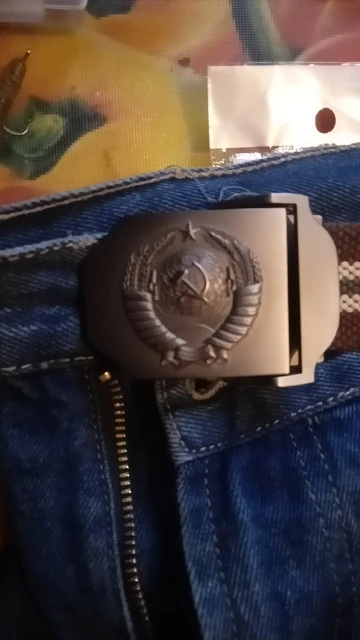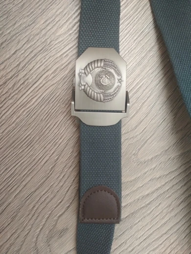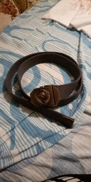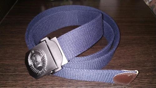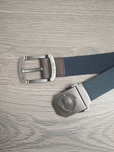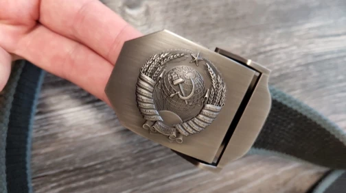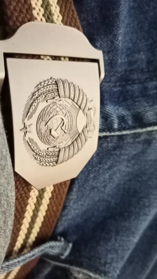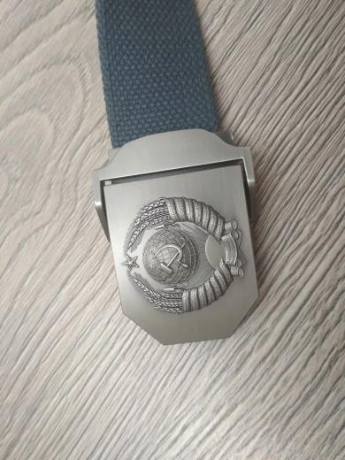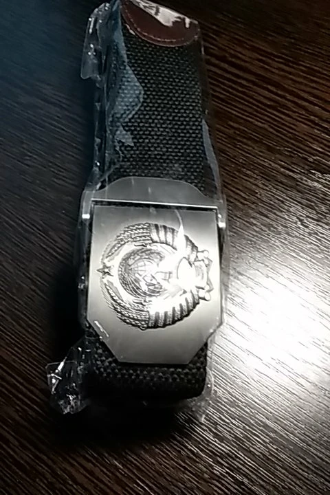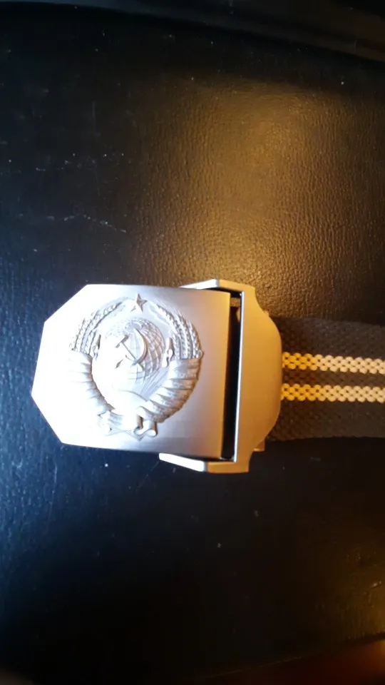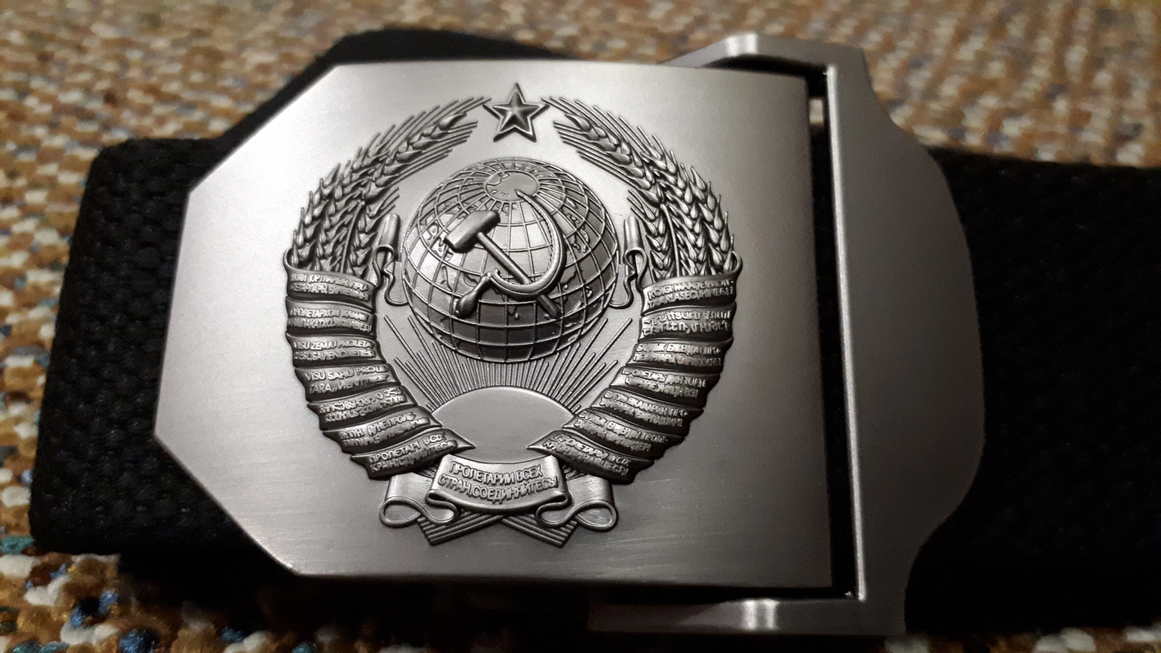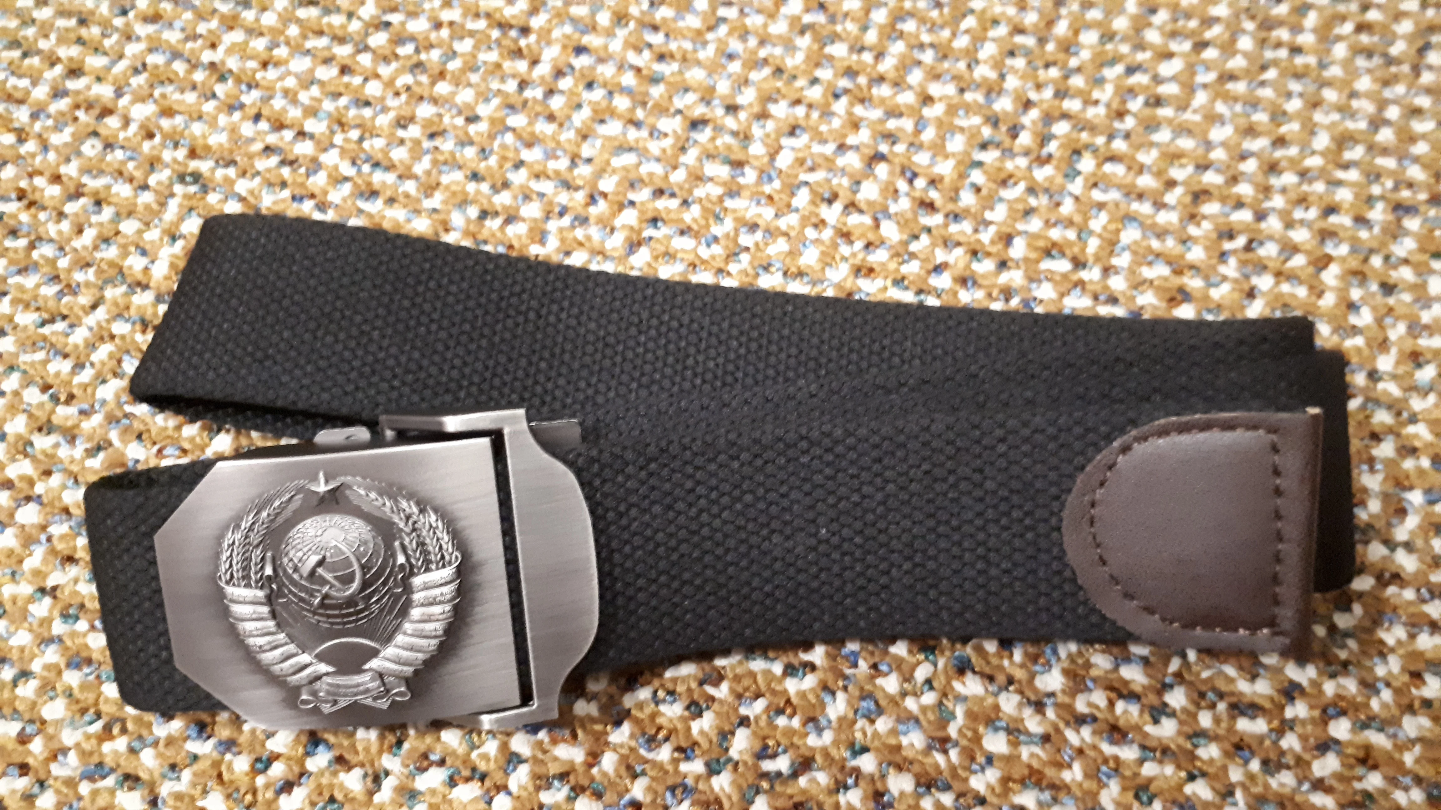 Ремень качественный. Пряжка тоже. Не знаю, что за металл, но на вес тяжёлая)). Герб СССР выполнен достаточно точно. Даже надпись читается.