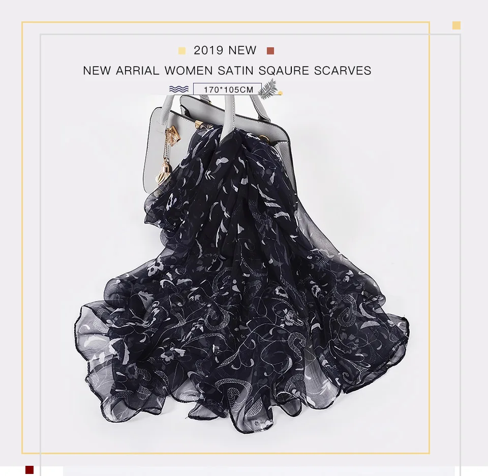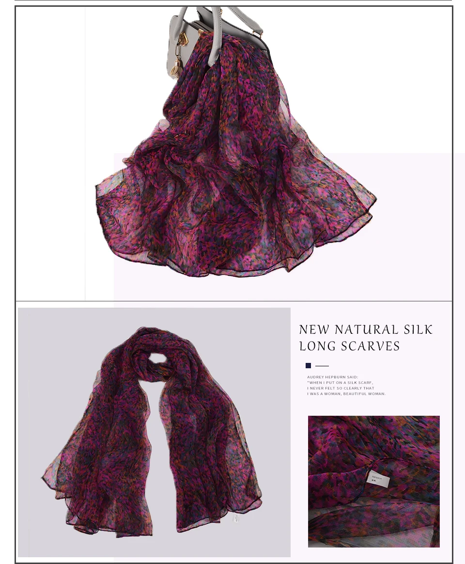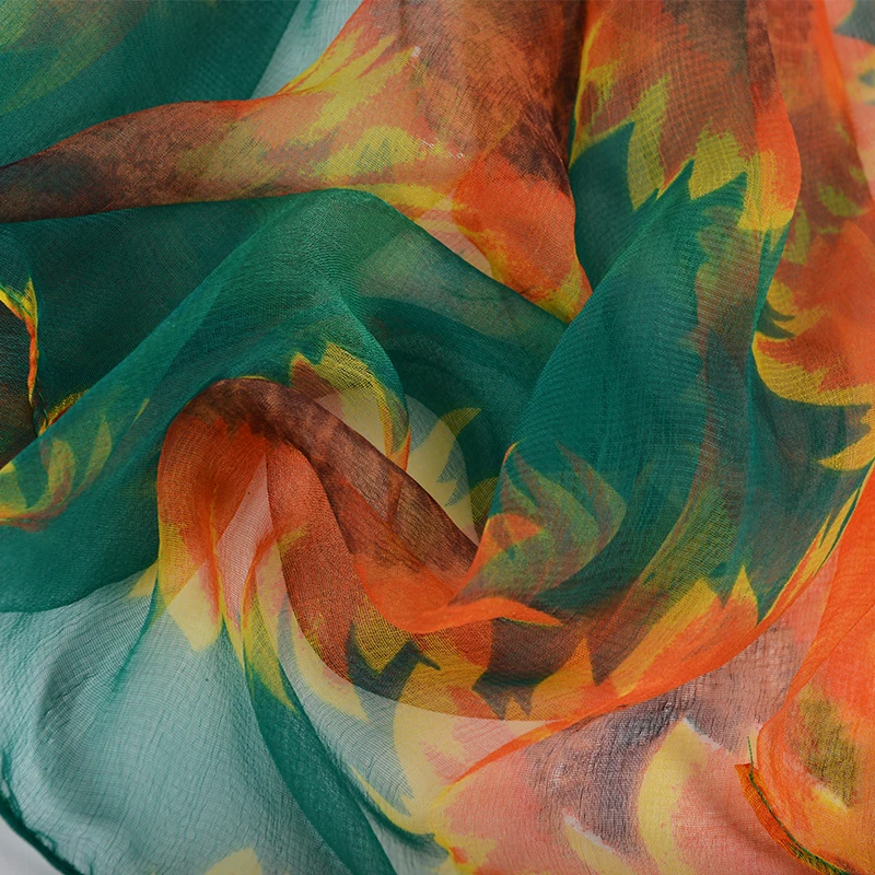Шарф Шелковый женский BYSIFA, длинный, оранжевый, зеленый, Осенний