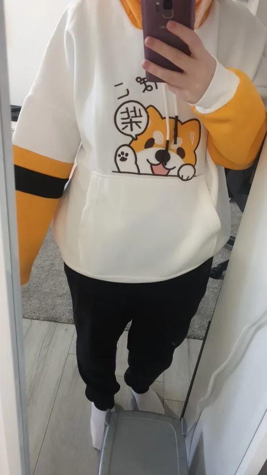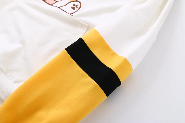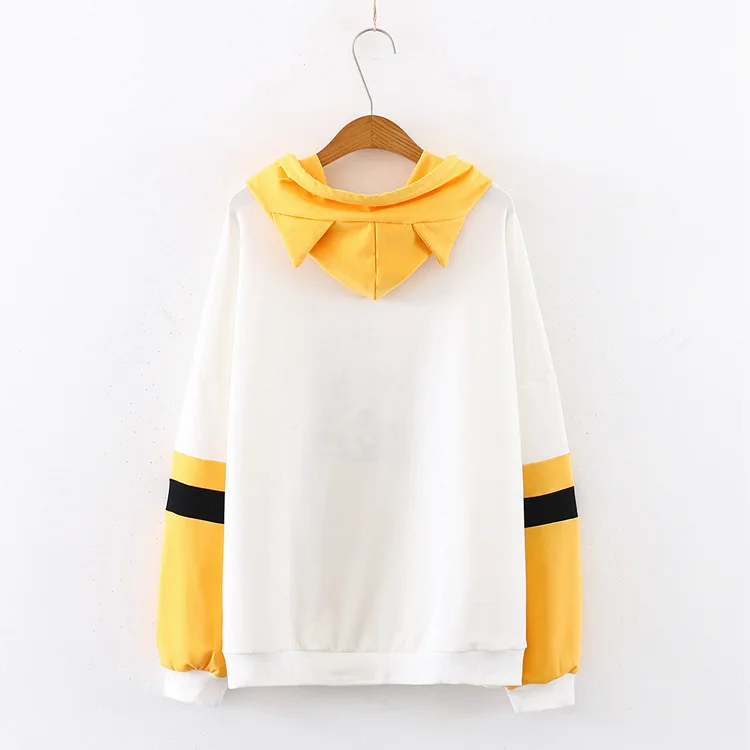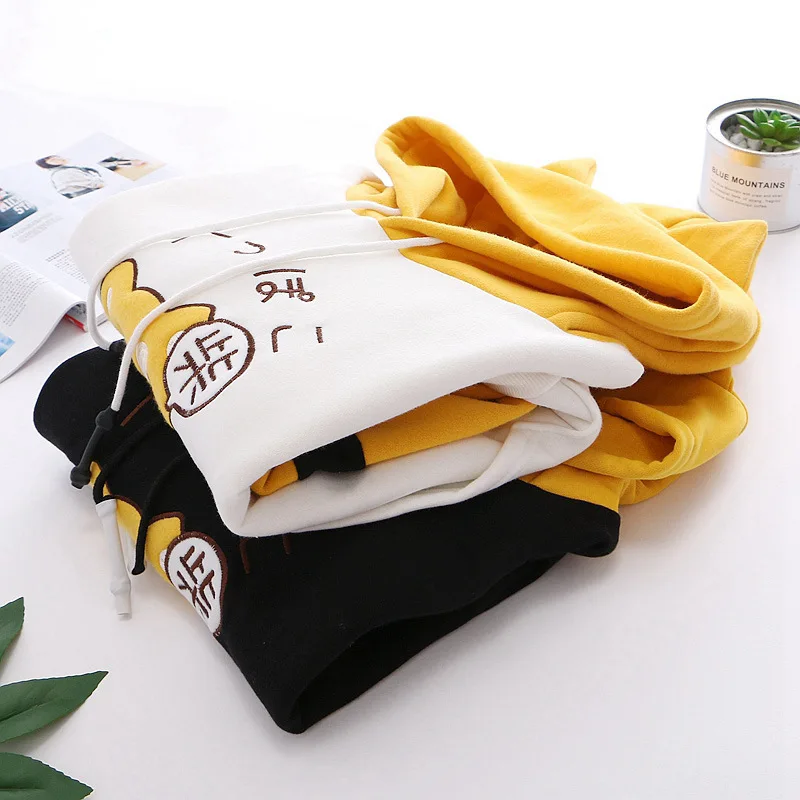 Зимние женские толстовки в японском стиле Харадзюку с рисунком животных, теплая одежда, милая желтая толстовка с капюшоном, милая школьная флисовая толстовка для девочек