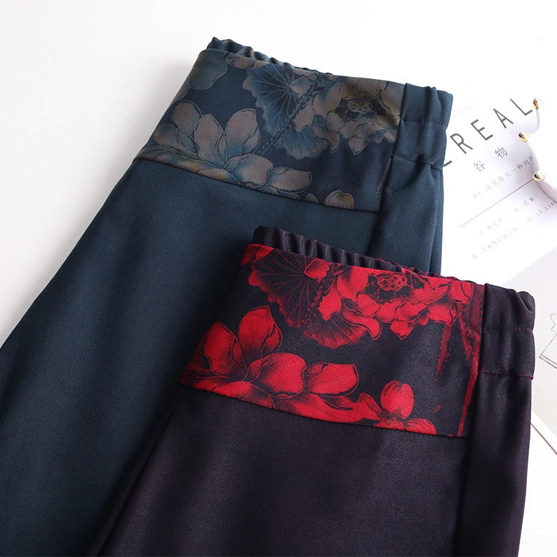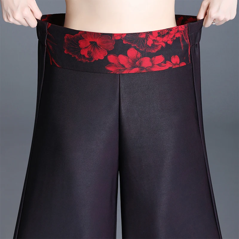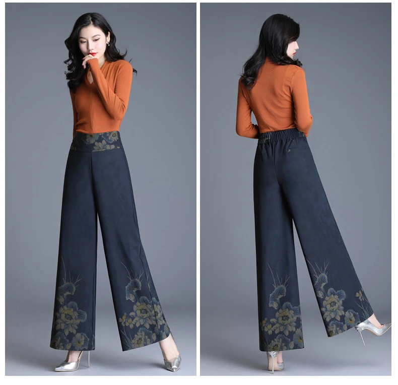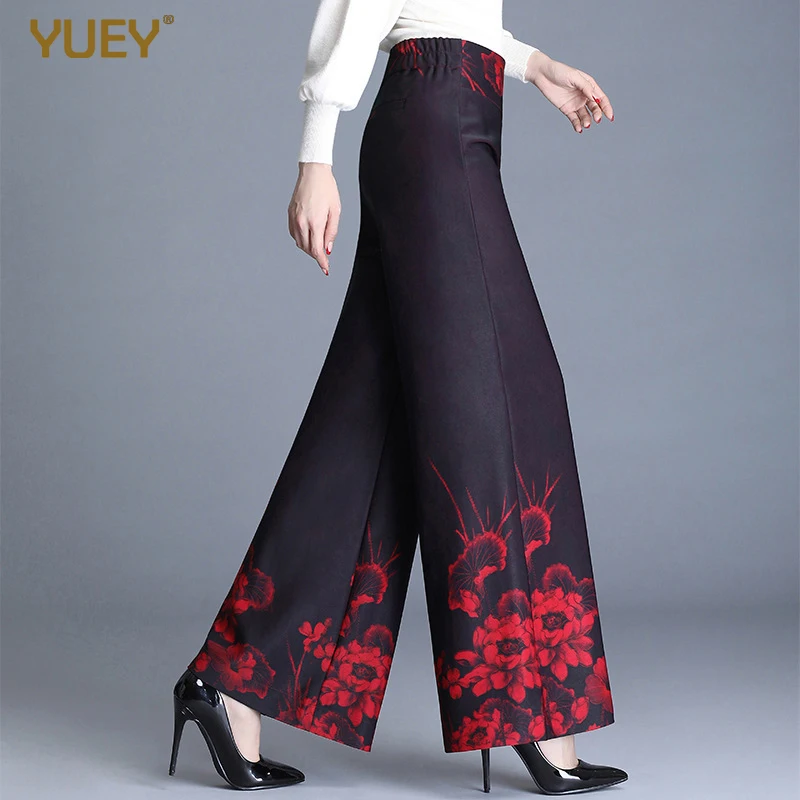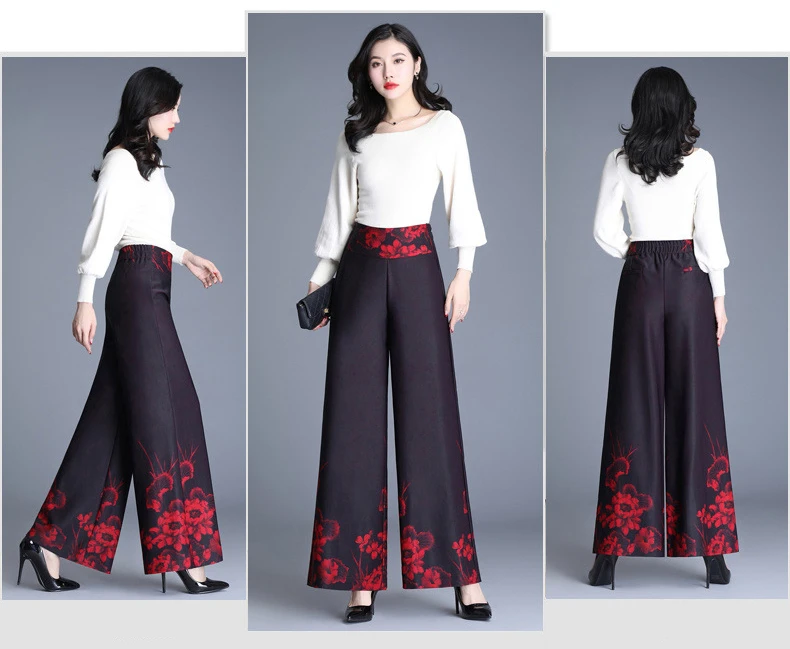 Брюки женские с широкими штанинами, жаккардовые свободные прямые утепленные штаны с высокой талией, с цветочным принтом, большие размеры, на осень-зиму