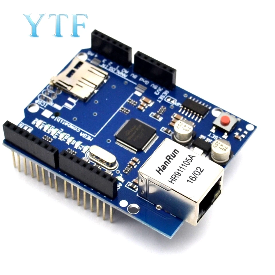 Модуль расширения сети Ethernet W5100, может стать простым веб-сервером или сетевым управлением для чтения и записи цифрового и аналогового интерфейса и других сетевых приложений. IDE может использоваться непосредственно в файлах библиотеки Ethernet с помощью простого веб-сервера.