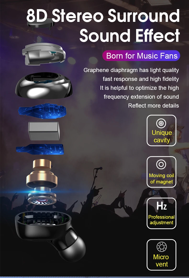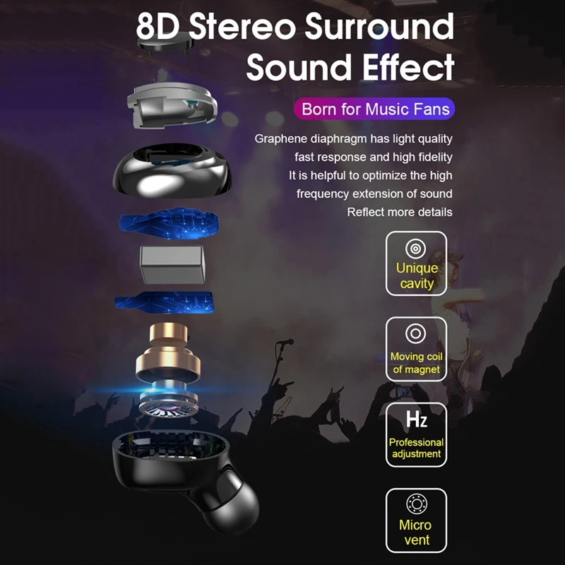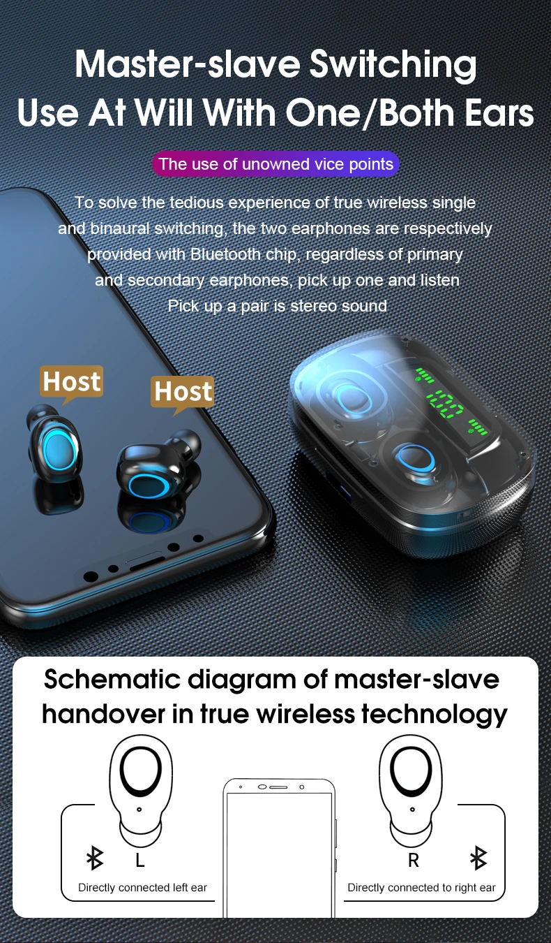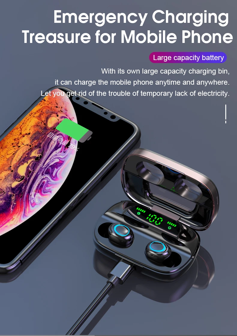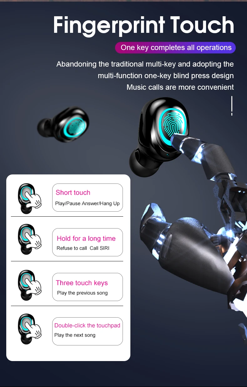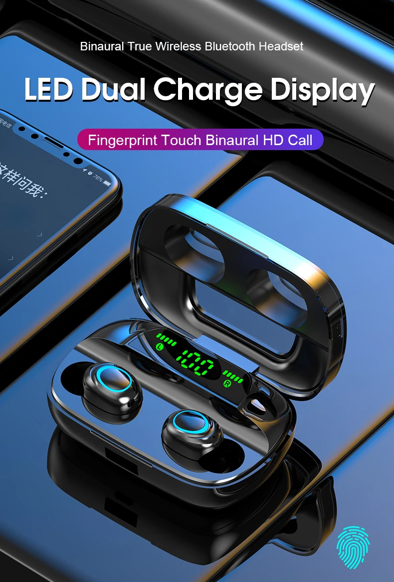 Сенсорные беспроводные наушники TWS 5,0 Bluetooth-наушники HiFi стерео наушники шумоподавляющая гарнитура водонепроницаемые наушники со светодиодной подсветкой