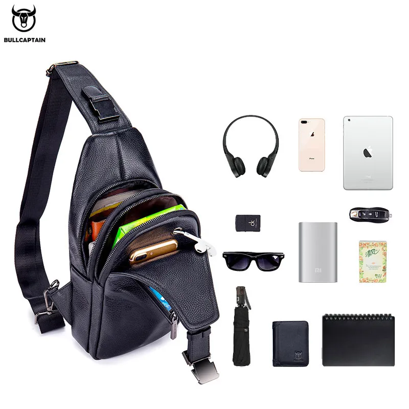 Мужская кожаная нагрудная сумка BULLCAPTAIN, многофункциональная дорожная сумка для хранения, мужская сумка-мессенджер, кожаная сумка на молнии