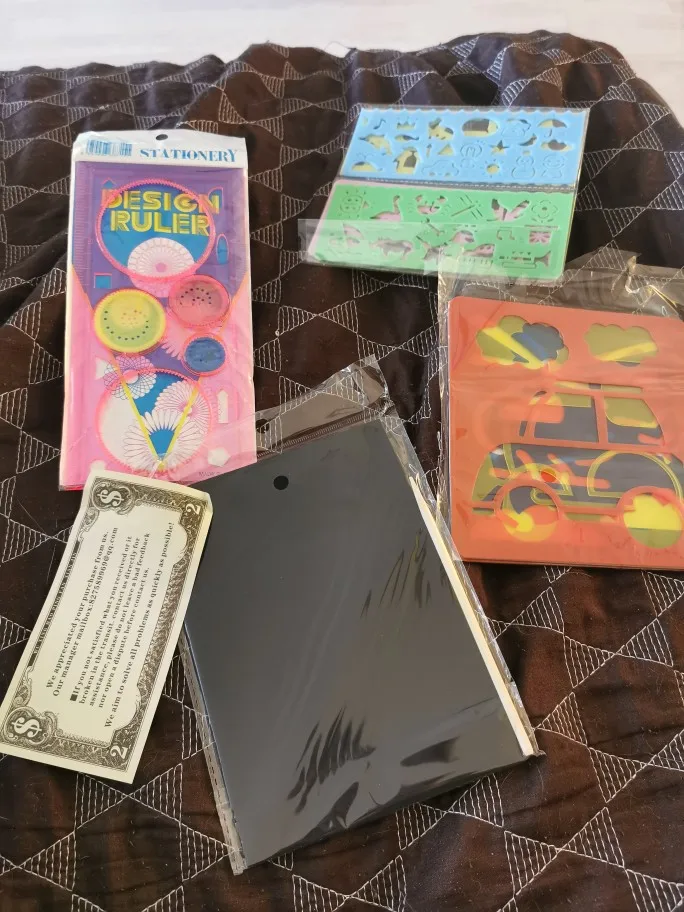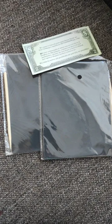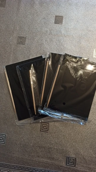 Плотный картон размером примерно А5, как тетрадный лист, рисовать, писать удобно. Продавец положил письмо на случай, если товар повреждён или некачественный, где указан почтовый ящик менеджера магазина. Мне очень понравилось, буду заказывать ещё)