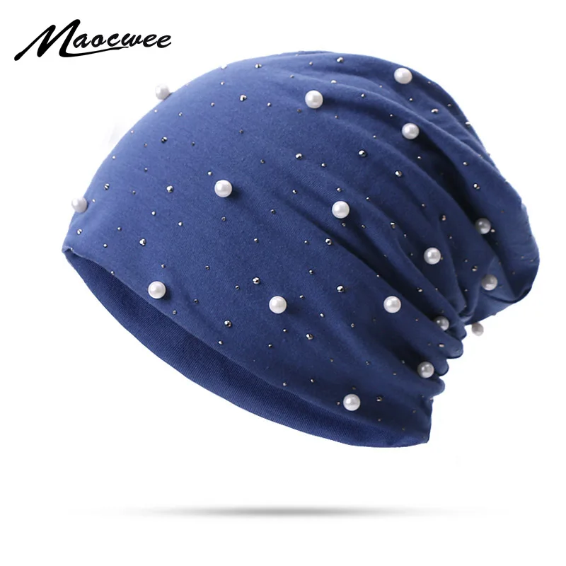 Женская перламутровая шапка, головной убор, однотонная шапка с жемч...