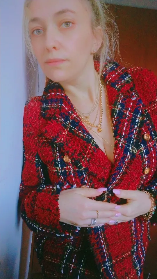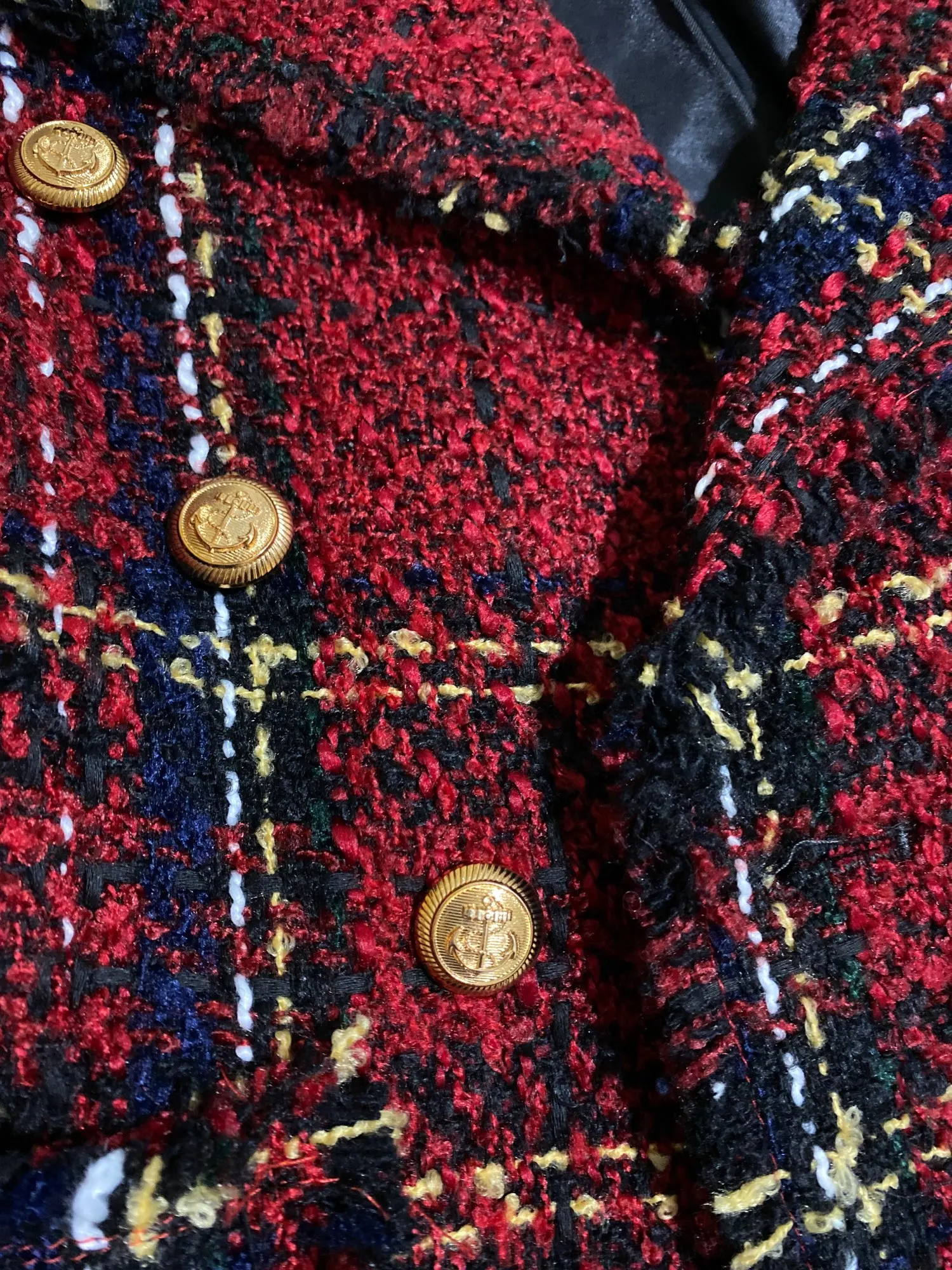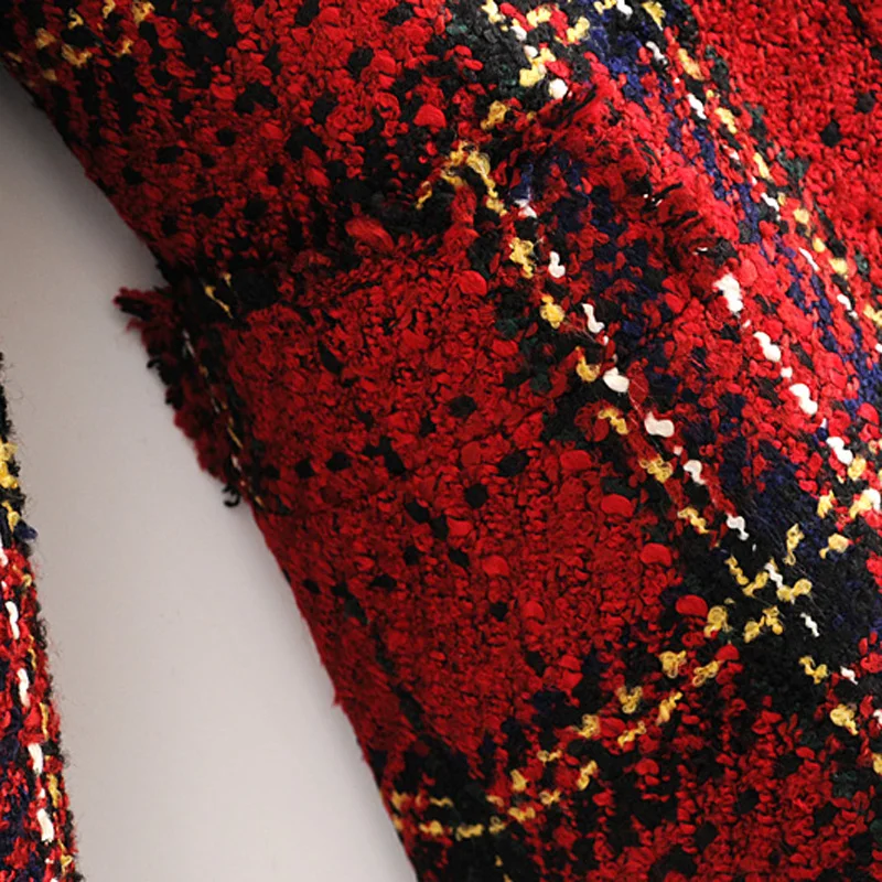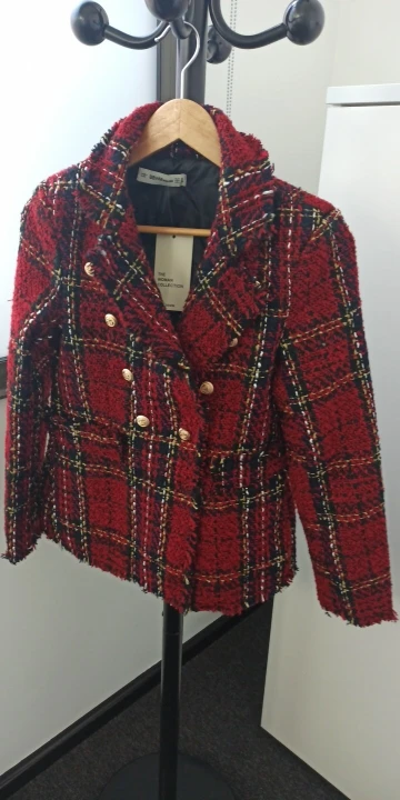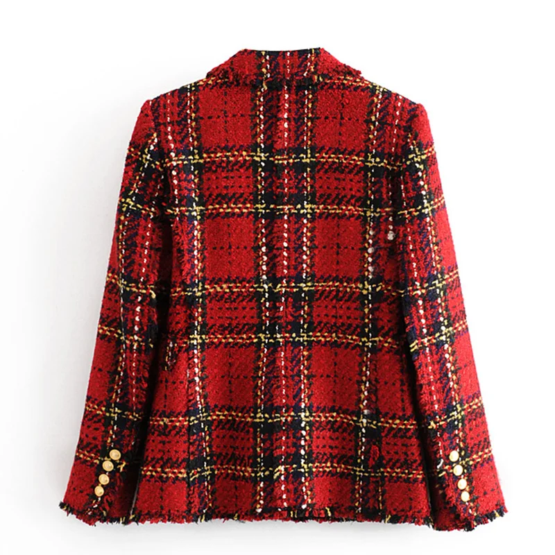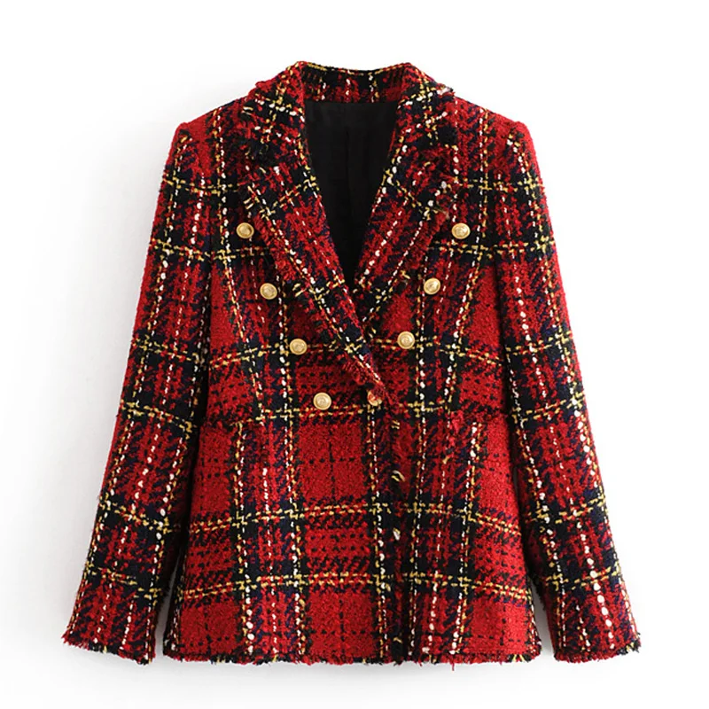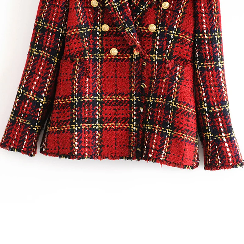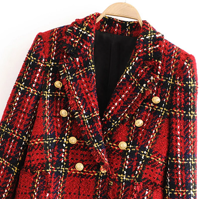 Жакет твидовый Женский, двубортный, с отложным воротником, в клетку, с длинным рукавом