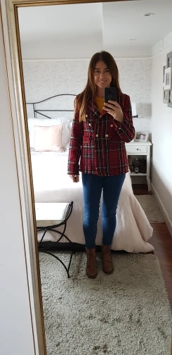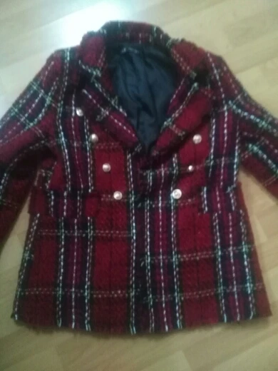 Куртка очень хорошо обрезана, соответствует 38/40 французскому. Я занимаюсь 90D и очень доволен таблицей размеров, которая является довольно точной, чтобы выбрать куртку, которая соответствует моим измерениям. Очень красивая и плотная ткань, очень милые пуговицы, красивый вид. Я рекомендую этот магазин для этой очень красивой куртки