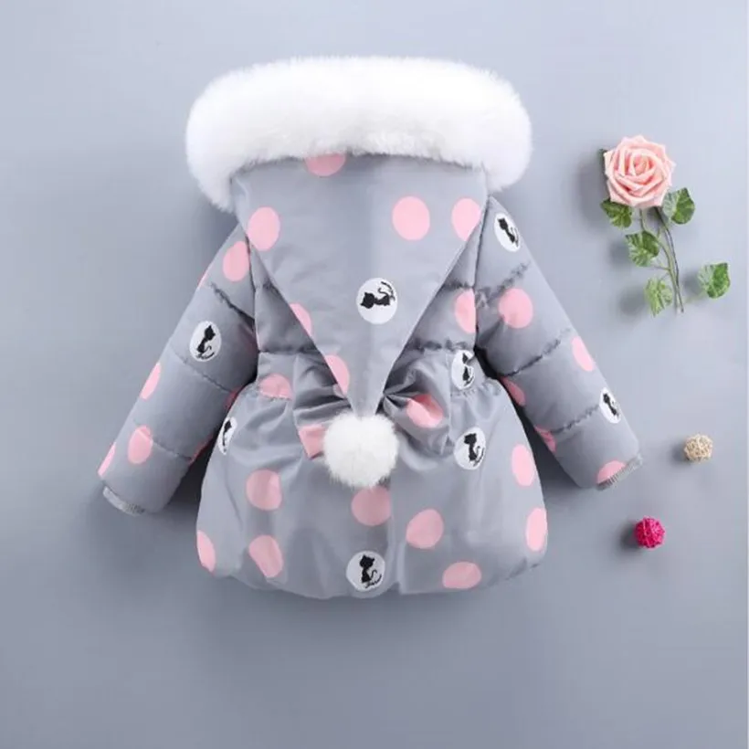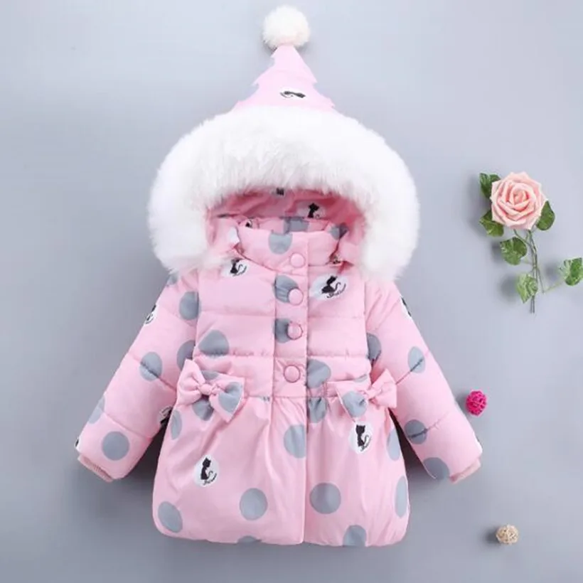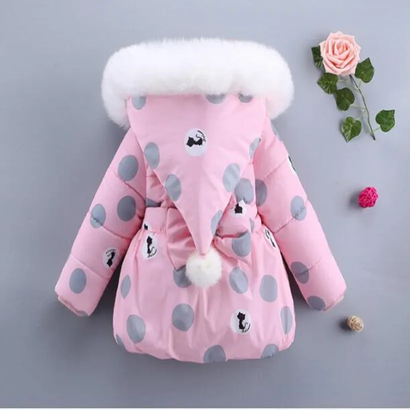 Куртка с капюшоном для девочек, зимняя, теплая, с искусственным мехом