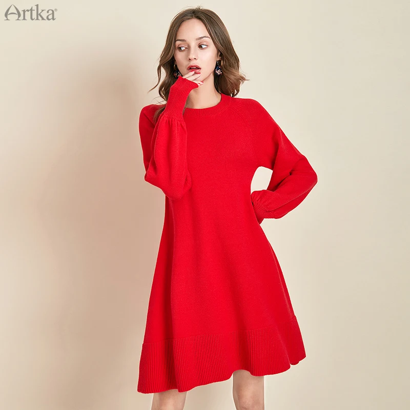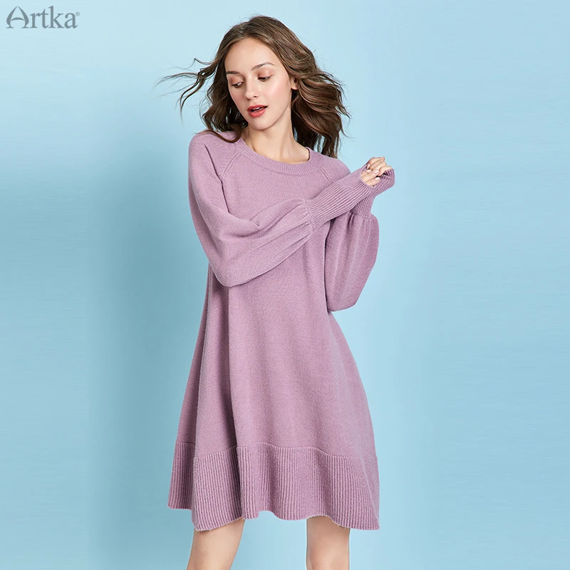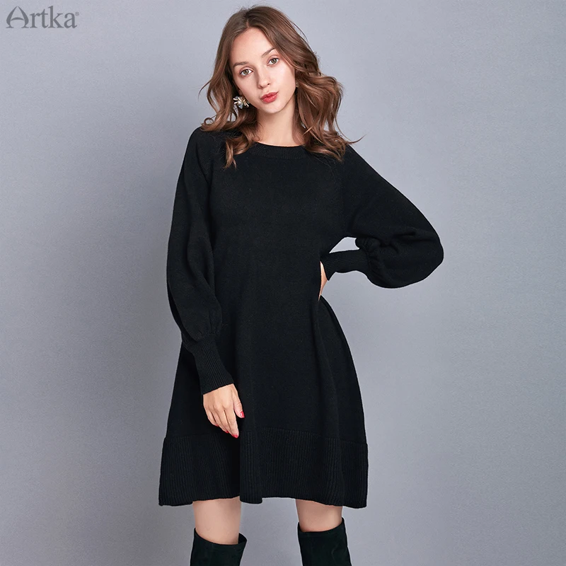 Женское трикотажное платье ARTKA, зимнее длинное платье-свитер с круглым вырезом и рукавами-фонариками, 4 цвета, YB10895Q, 2019