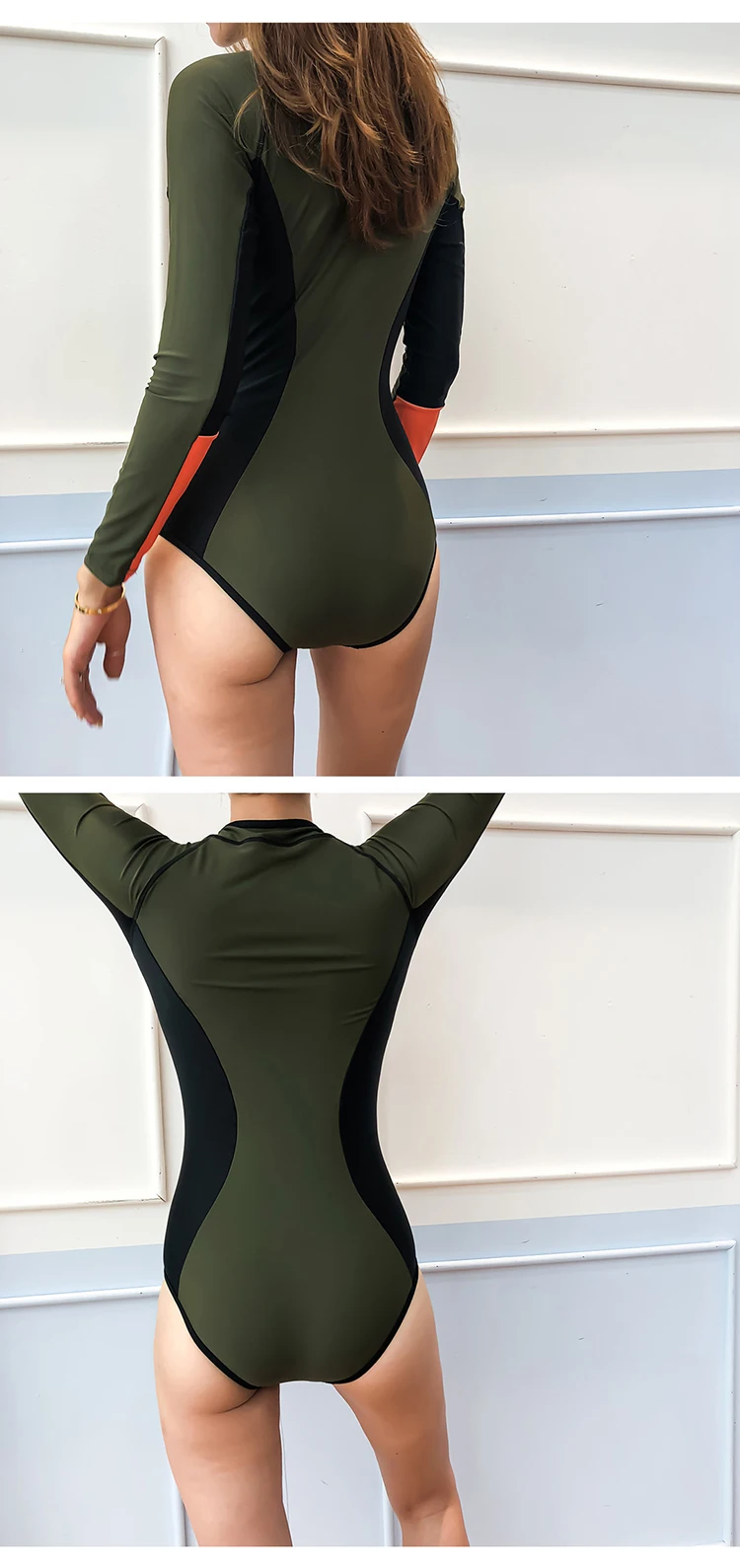 Женский слитный купальник, с принтом, с длинным рукавом, Рашгард для серфинга