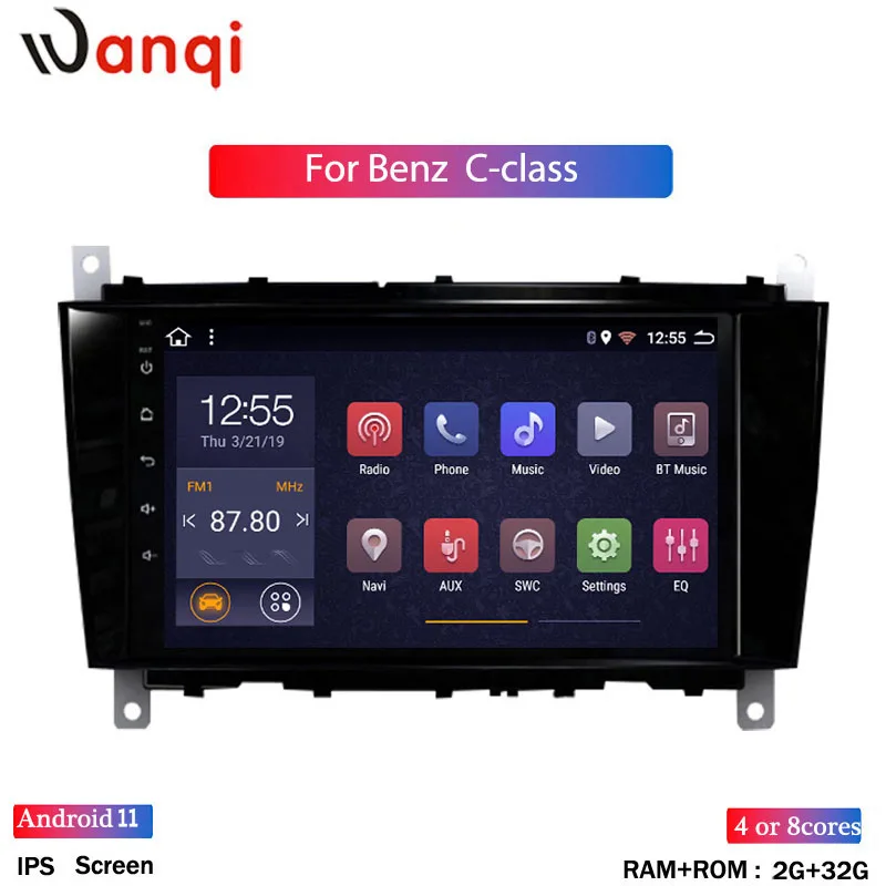 Автомобильный GPS-навигатор wanqi Android 11 для Benz C-Class W203 (2004 2005 2006 2007) CLC G Class W467 (2008-2011), CD-плеер без DVD