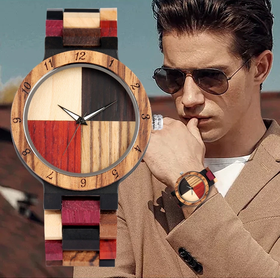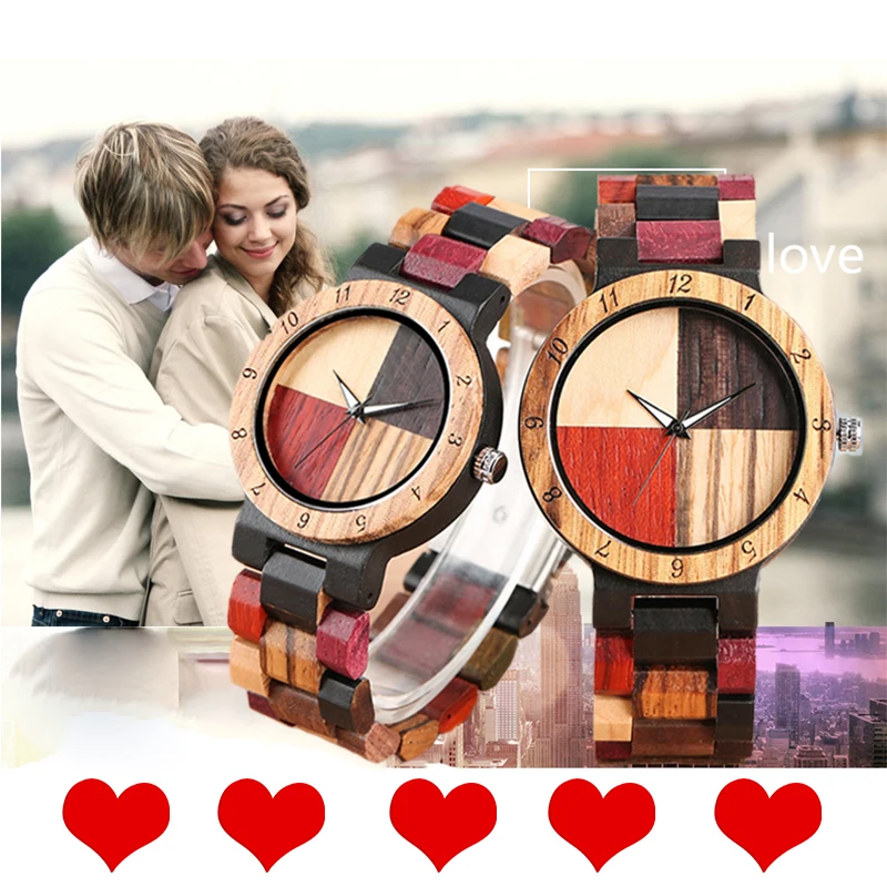 4 цвета вышитые деревянные часы, Регулируемые Кварцевые часы с разноцветным ремешком, мужские часы, часы в ретро стиле, часы для влюбленных, подарки