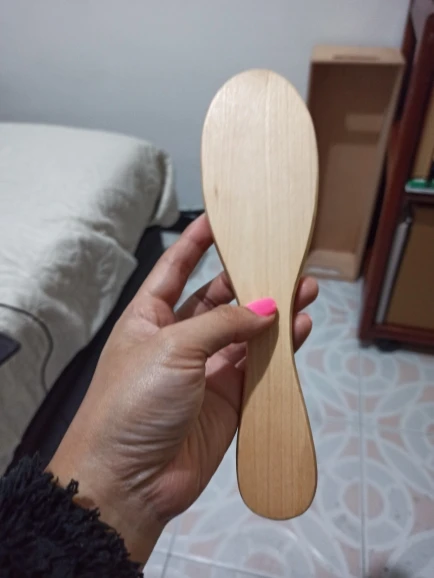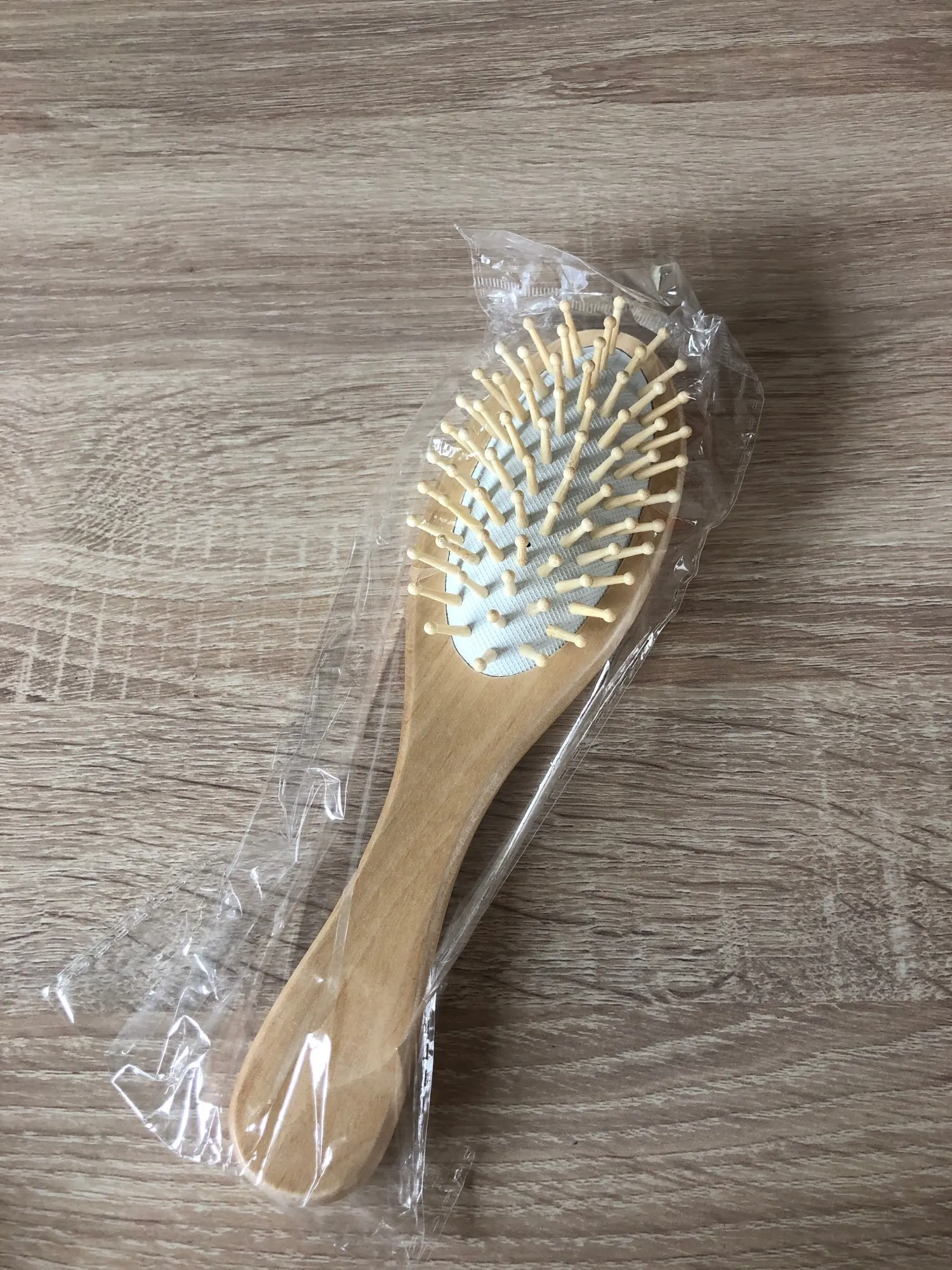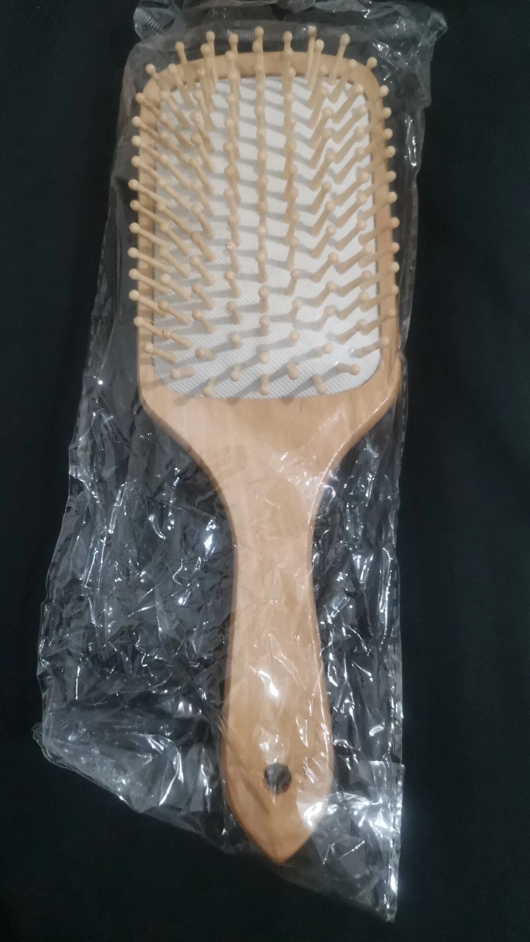Очень хорошая кисть из дерева, как на картинке. Очень мягкая расческа для волос. Удобный размер для нормальных волос. Если он обильный или толстый, волосы лучше на один размер больше. Я рекомендую продавцу. Доставка задерживается, но я прибыла в течение ожидаемого времени.