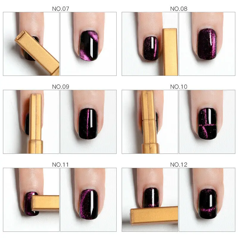 Спецификация: Цвет: золотистый Материал: ПВХ + редкоземельный Сильный магнитный Размер: 8*1,2 см Как использовать магнитную доску 1. Нанесите ногти с помощью губчатой пилки, 2. Форма ногтей с стальным нажимом, 3. Нанесите праймер подождите 5 секунд, нанесите тонкий слой базового покрытия, 4. Гель для лечения под УФ лампой 2 мин 5. Нанесите тонкий слой геля для ногтей кошачий глаз под УФ лампой 2 мин 6. Снова нанесите тонкий слой геля для ногтей кошачий глаз, 7. С оригинальным магнитным выравниванием поверхности ногтей всасывает направление линии магнитного решения, 8. Нанесите слой верхнего покрытия гель для лечения под УФ лампой 2 мин Содержимое упаковки: 1 шт. 3D Магнитная палка кошачий глаз