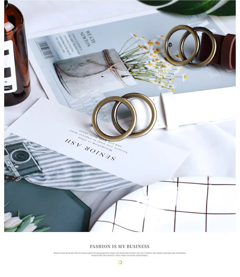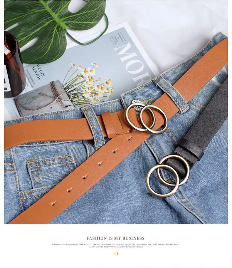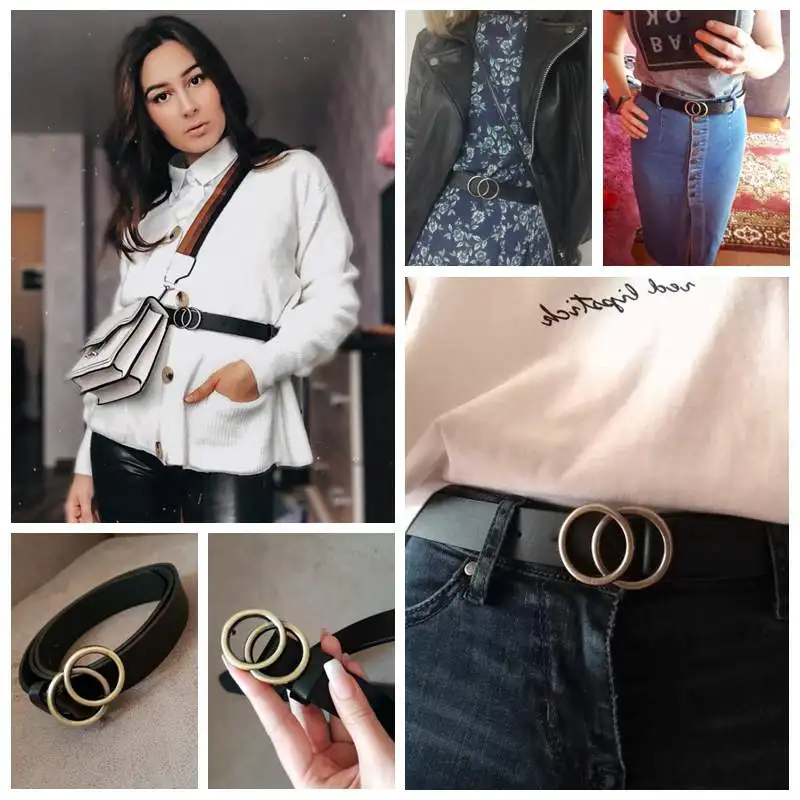 Ремень женский из искусственной кожи с двойной круглой пряжкой