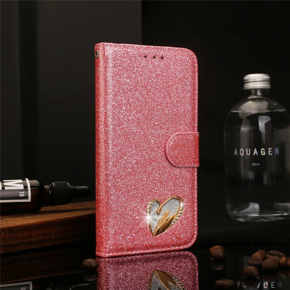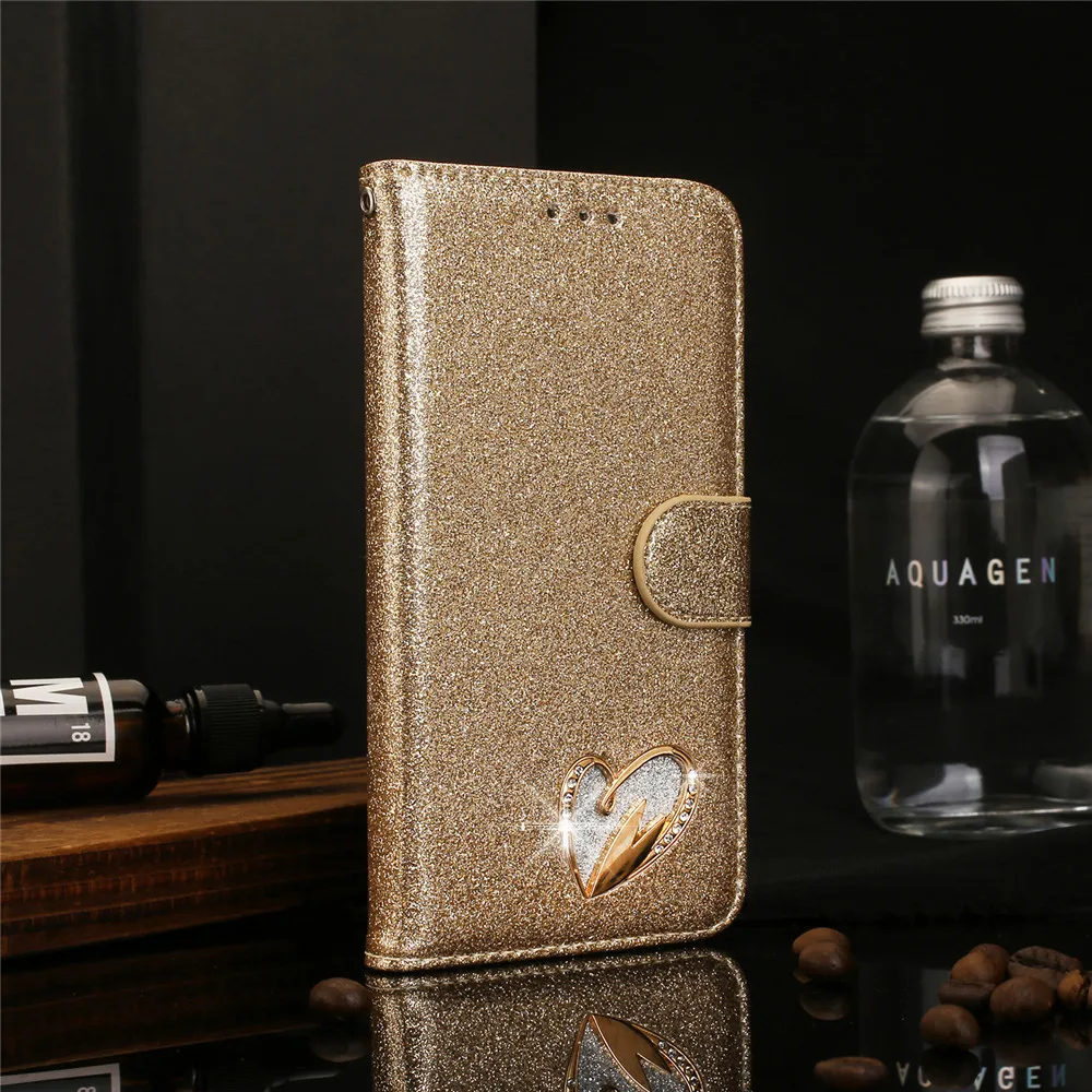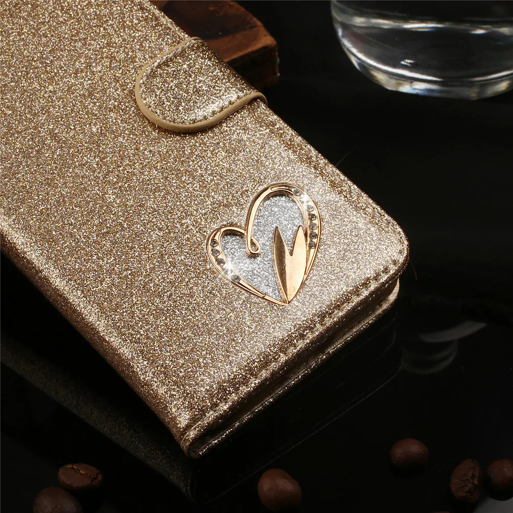 Блестящий чехол для Huawei P30 P20 Lite кожаный чехол-книжка Love J...