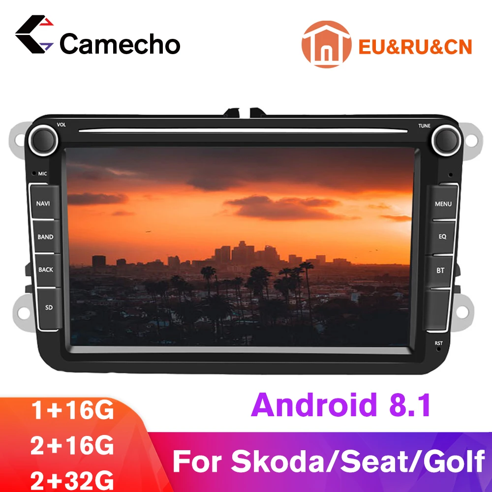 Camecho Android 8,1 автомобильный мультимедийный плеер GPS 2 Din Авто радио для VWVolkswagenGolfPoloPassatb7b6SEATleonSkoda