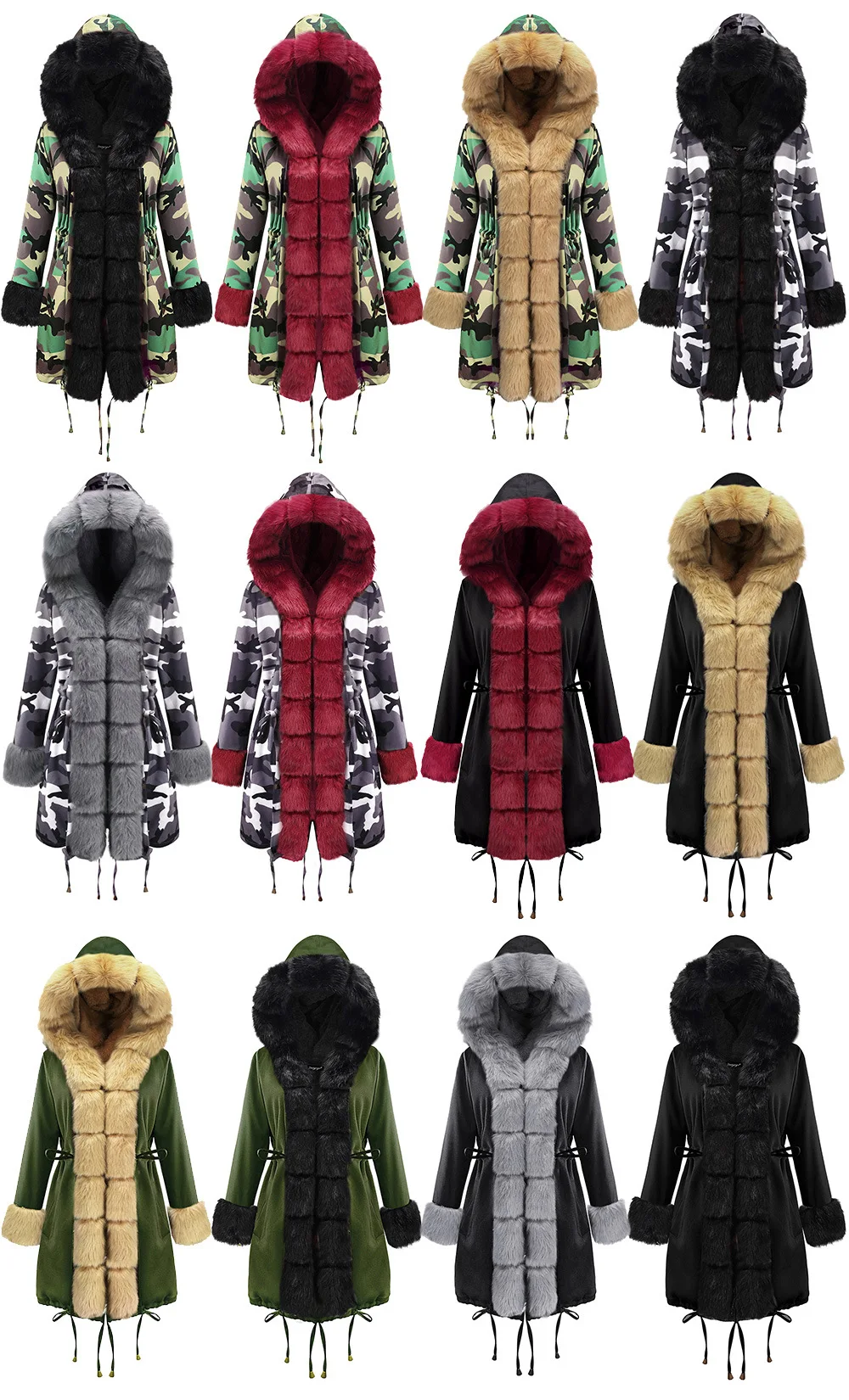 Пальто из искусственного меха в европейском и американском стиле; Длинное камуфляжное пальто с капюшоном; Сезон осень-зима; Модная темпераментная куртка; Повседневное свободное теплое Женское пальто