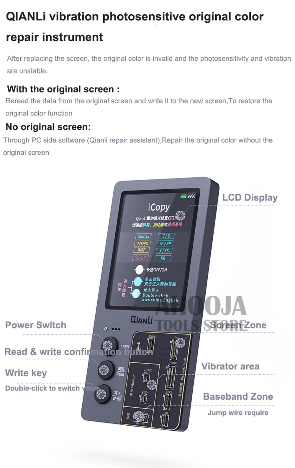 ЖК-экран Qianli iCopy Plus, оригинальный цветной ремонтный программатор, вибрациясенсорныйаккумулятор, Ремонтное устройство для iPhone XR XSMAX XS 8P 8