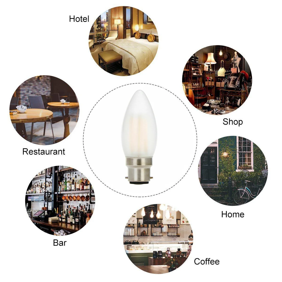 Основание Тип: B22 Напряжение: 220 В переменного тока Цвет освещения: холодный белый 6000-6500K; Теплый белый 2800-3200K 2 Вт (эквивалент 20 Вт);4 Вт (эквивалент 40 Вт);6 Вт (эквивалент 60 Вт) Сертификация: CE & ROHS Гарантия: 3 года