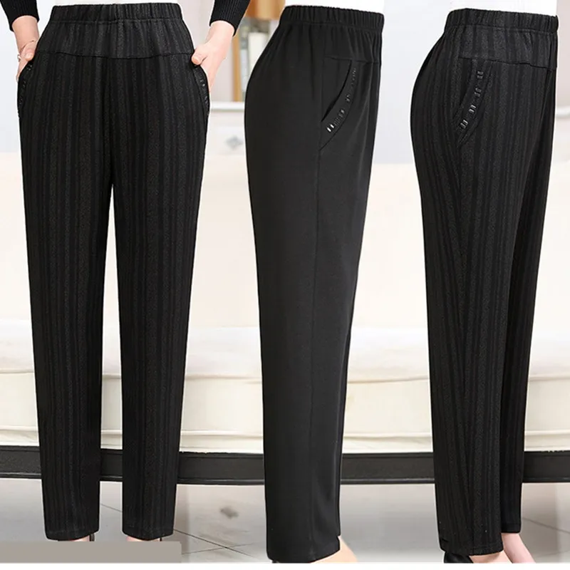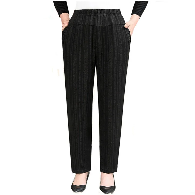Бархатные брюки для бабушки среднего возраста, модные повседневные свободные женские брюки с эластичным поясом, теплые женские зимние брюки большого размера