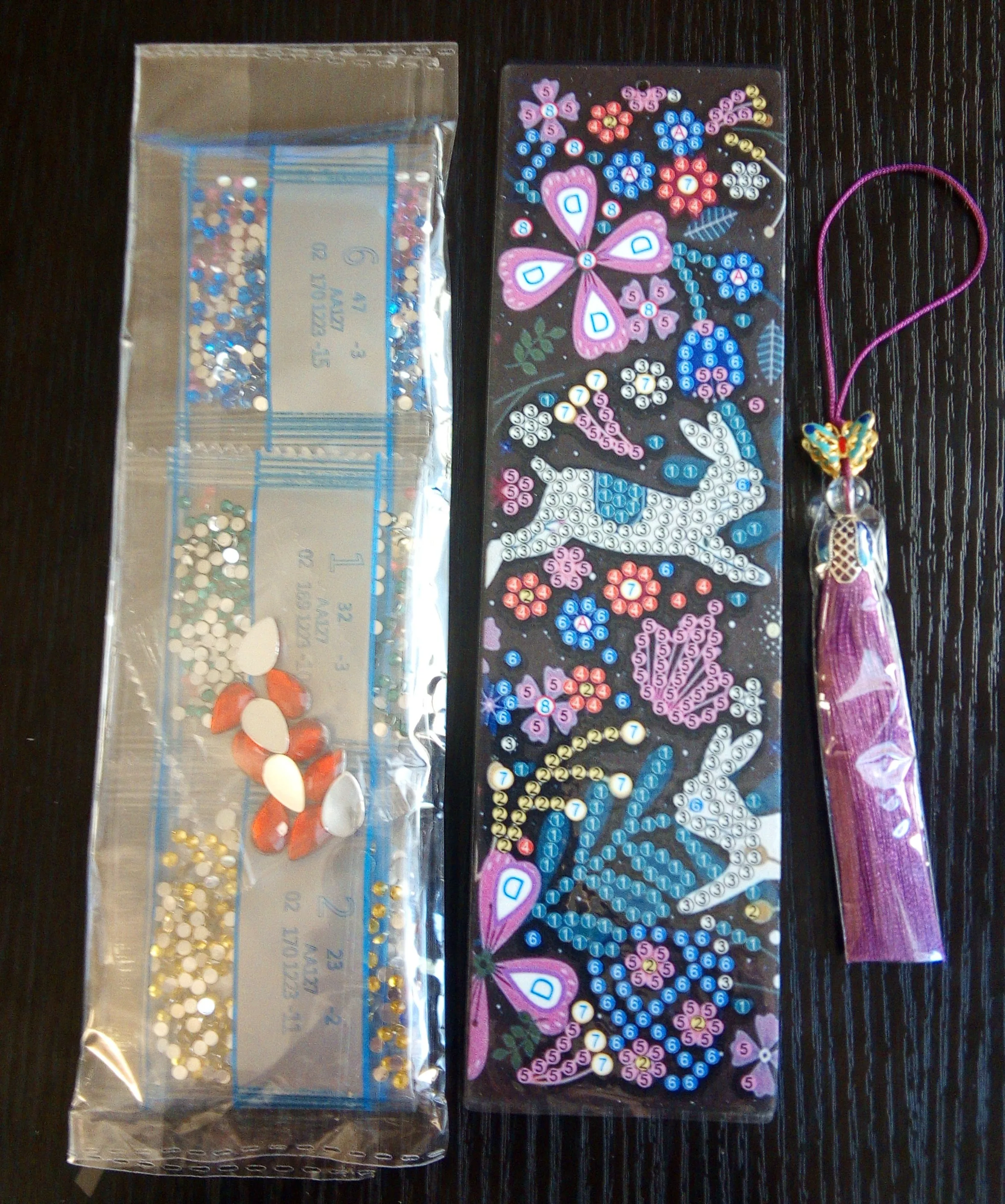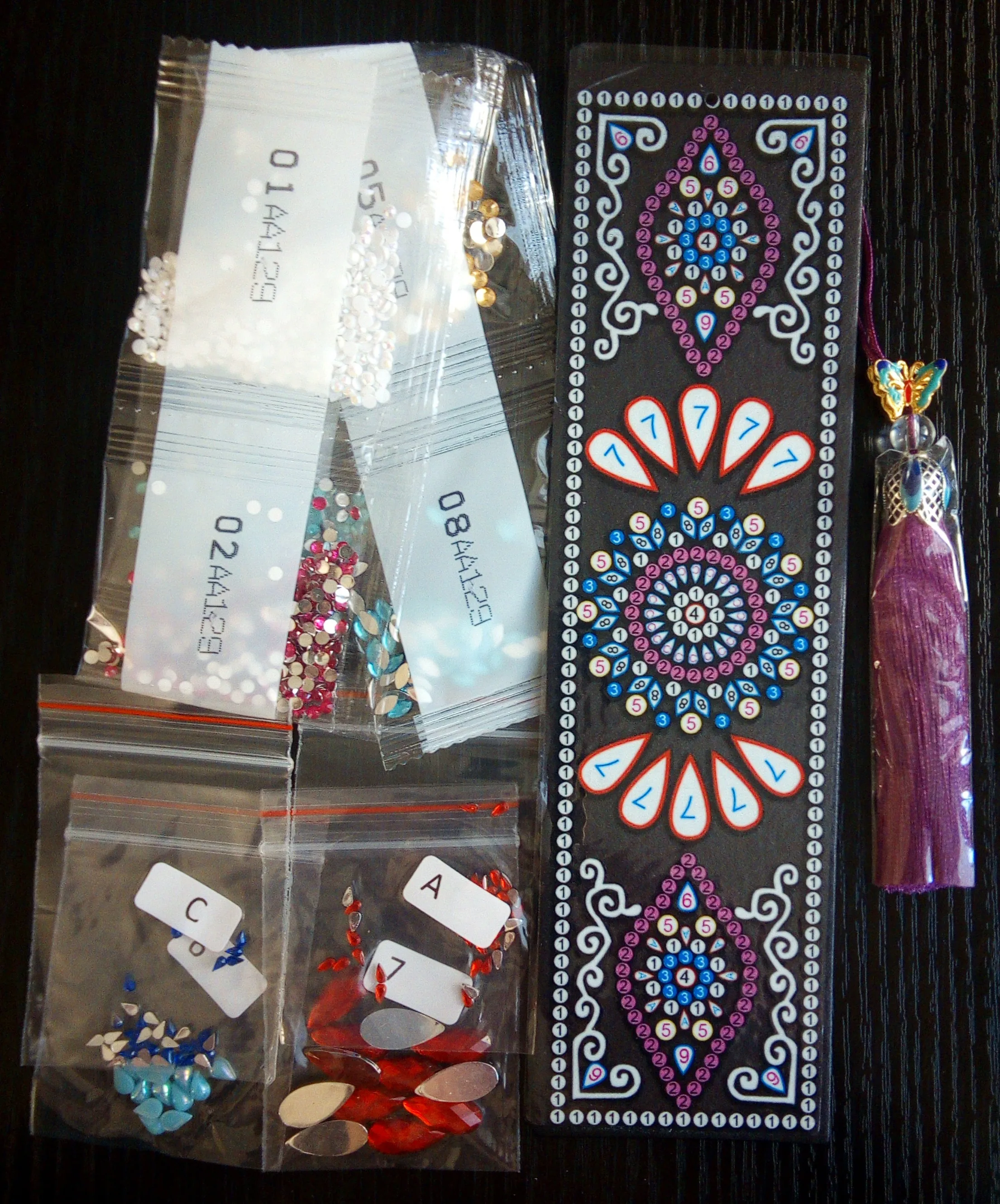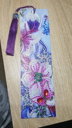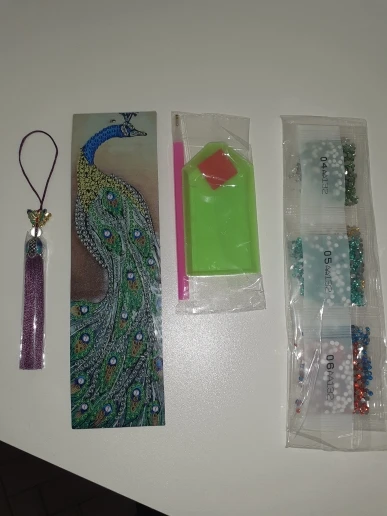 Закладка - полный восторг, начиная от упаковки и заканчивая готовой работой! Все упаковано идеально, в отдельные пакетики, все герметично. Стразиков огромное количество, осталось столько, что еще на 10 закладок хватит! Кисточка упакована отдельна, нить к нити! Сама закладка выполнена из прочного материала, похож на плотный дерматин или что-то вроде того, очень длинная, подойдет и для карманной книги и для увесистого тома! Выкладывается легко и быстро, стразы переливаются на свету, заманчиво блестят! Покупка полностью оправдывает себя, доставка около месяца, но стоит подождать, чтобы получить такую красоту! Идеальна для подарка своими руками! Однозначно рекомендую к покупке! Спасибо продавцу, порадовал!