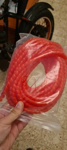 Отличная оплетка. Брал красную, для самоката. Подходит идеально, для защиты силового провода на колесо. Даже еще немного осталось на передок. Но шло оочень долго!