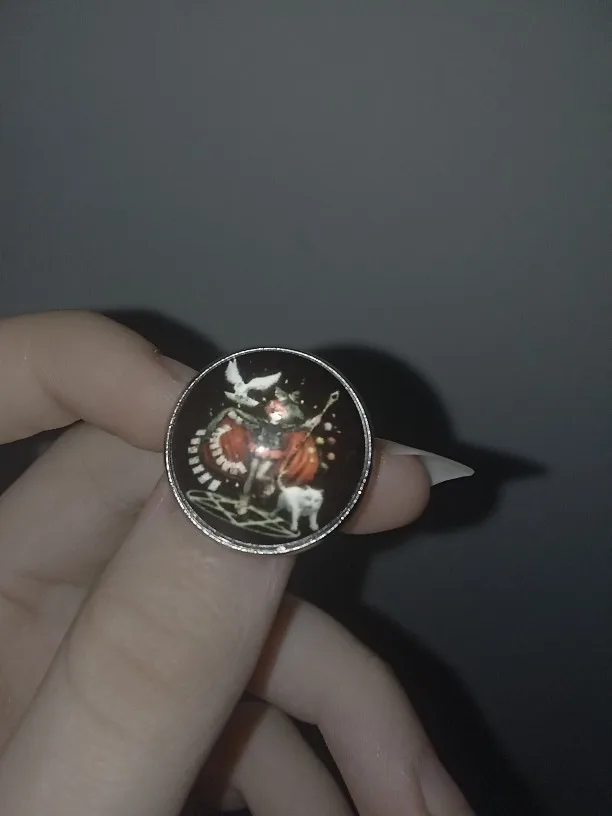 и так значок слишком маленький думала будет побольше ехал до ульяновска долго, почти 3 месяца и ещё печать не очень так как химико совсем тут лилипут и хрен чо поймёшь если не знать что там изображена химико