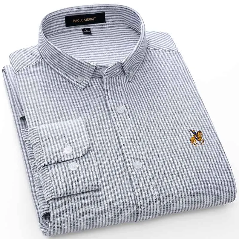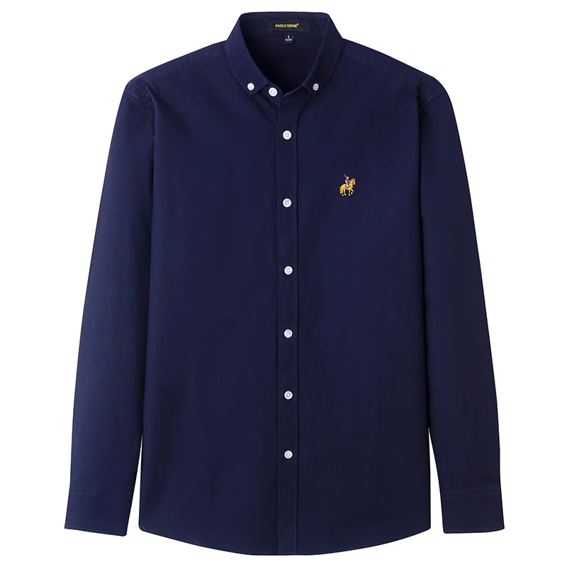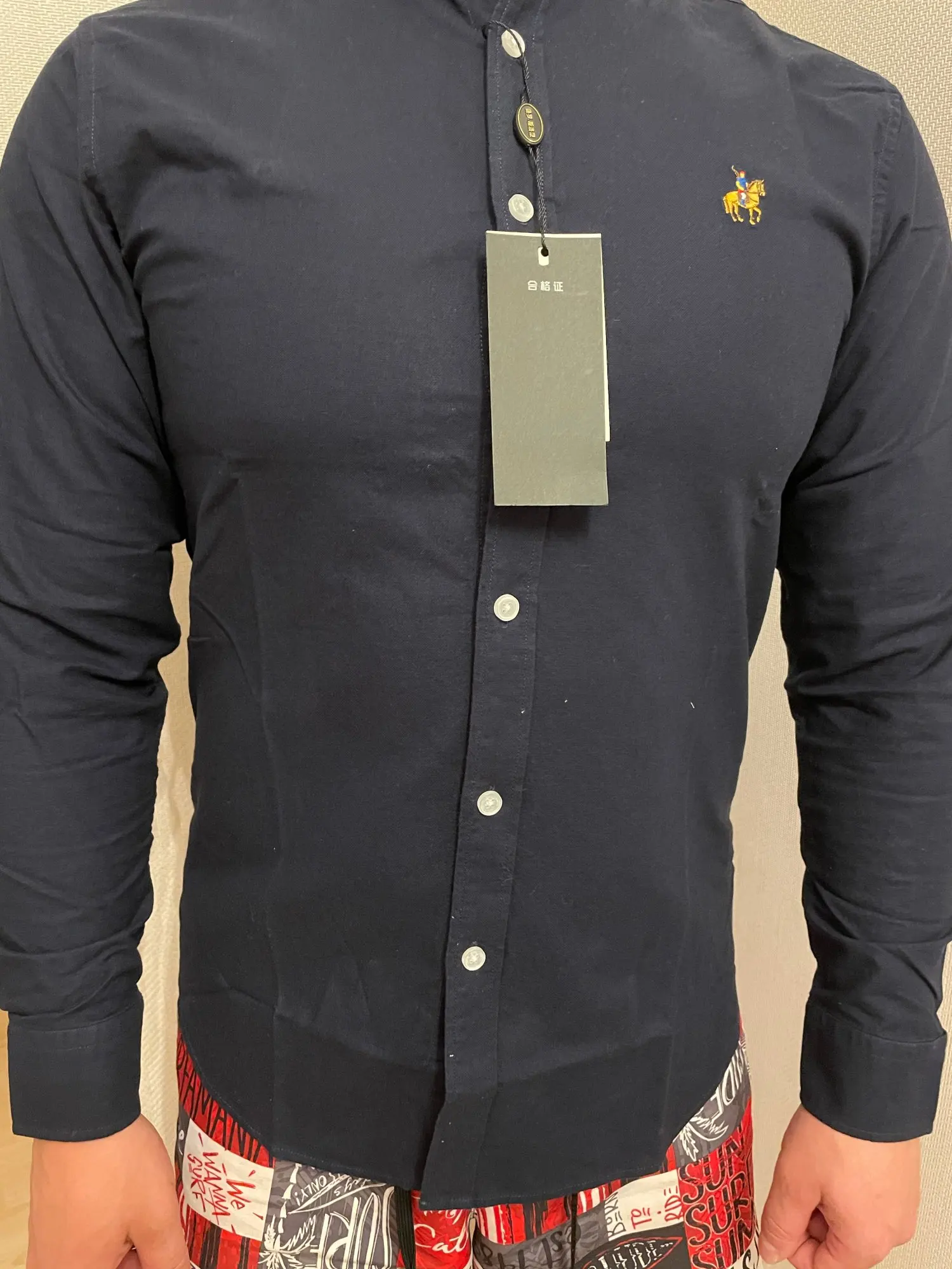 Мужская хлопковая рубашка из ткани Оксфорд, Стандартный крой, с длинными рукавами, без карманов, однотонная, 100%