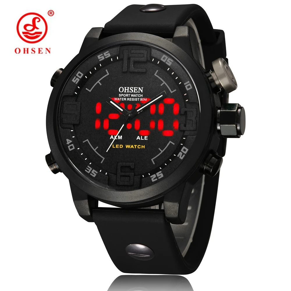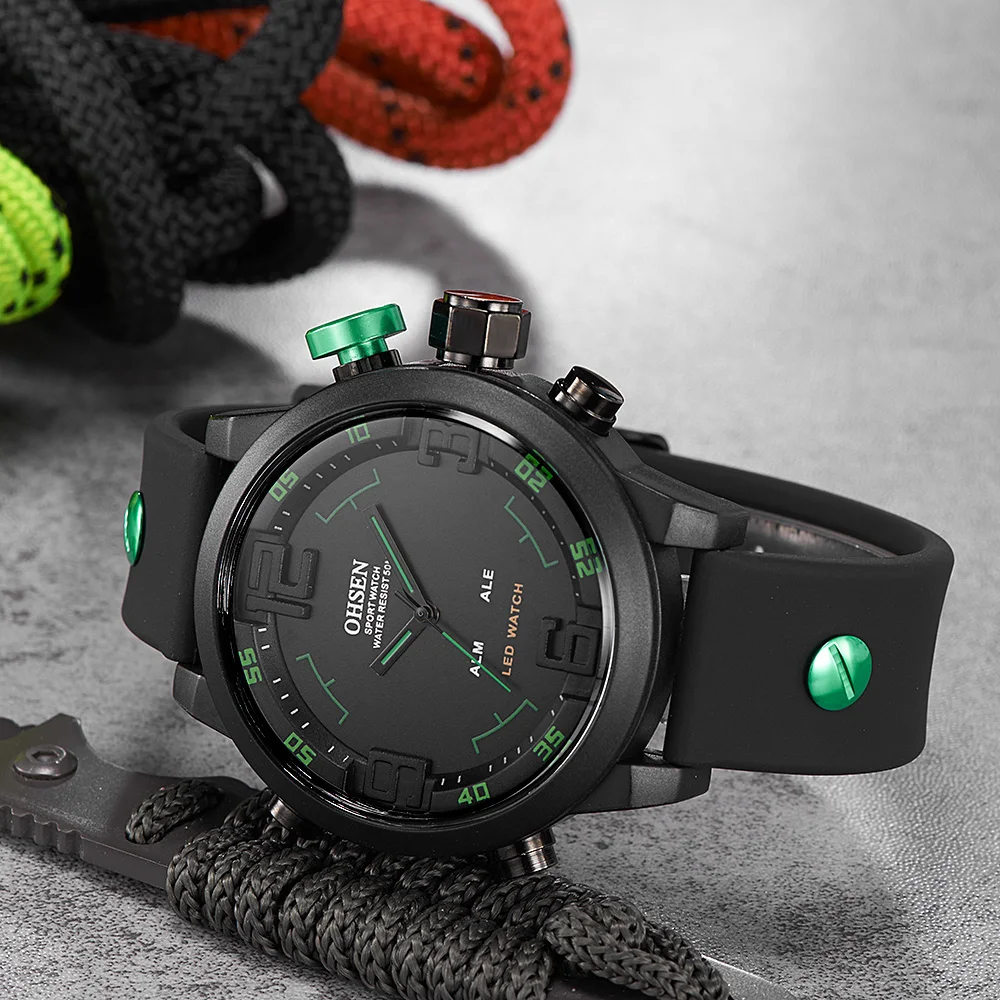 Часы мужские OHSEN, многофункциональные, водонепроницаемые, черные, военные, цифровые, спортивные