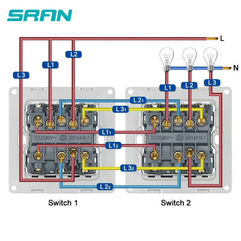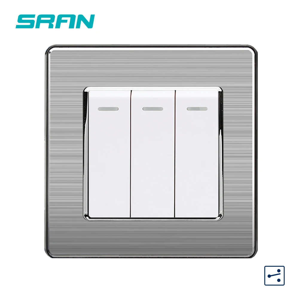 Настенный светильник ключатель света SRAN из нержавеющей стали, 3 ряда, 12 роскошных переключателей 86*86 мм