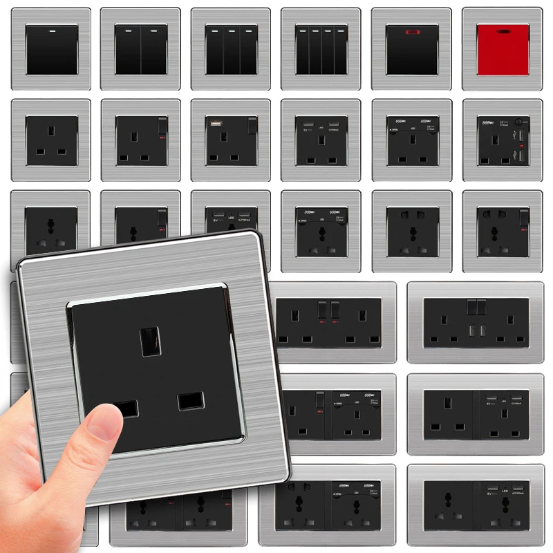 3 комплекта, 1/2/3way кулисный переключатель (86*86)250V 16A со светящейся лентыПанель из нержавеющей стали с посеребренными краямиБелый/черный/золотой