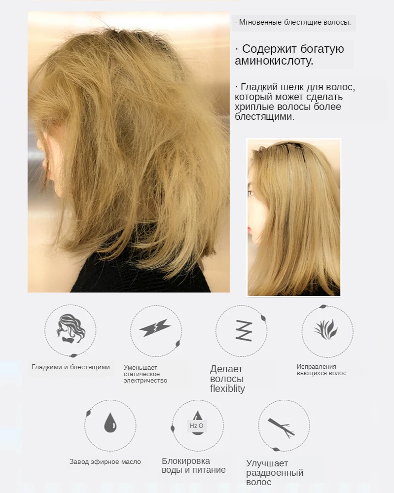 Ничего особенного! Обычно средство которое слегка утяжеляет волосы и которое можно купить в сетевом магазине. Пришло быстро, запах приятный.
