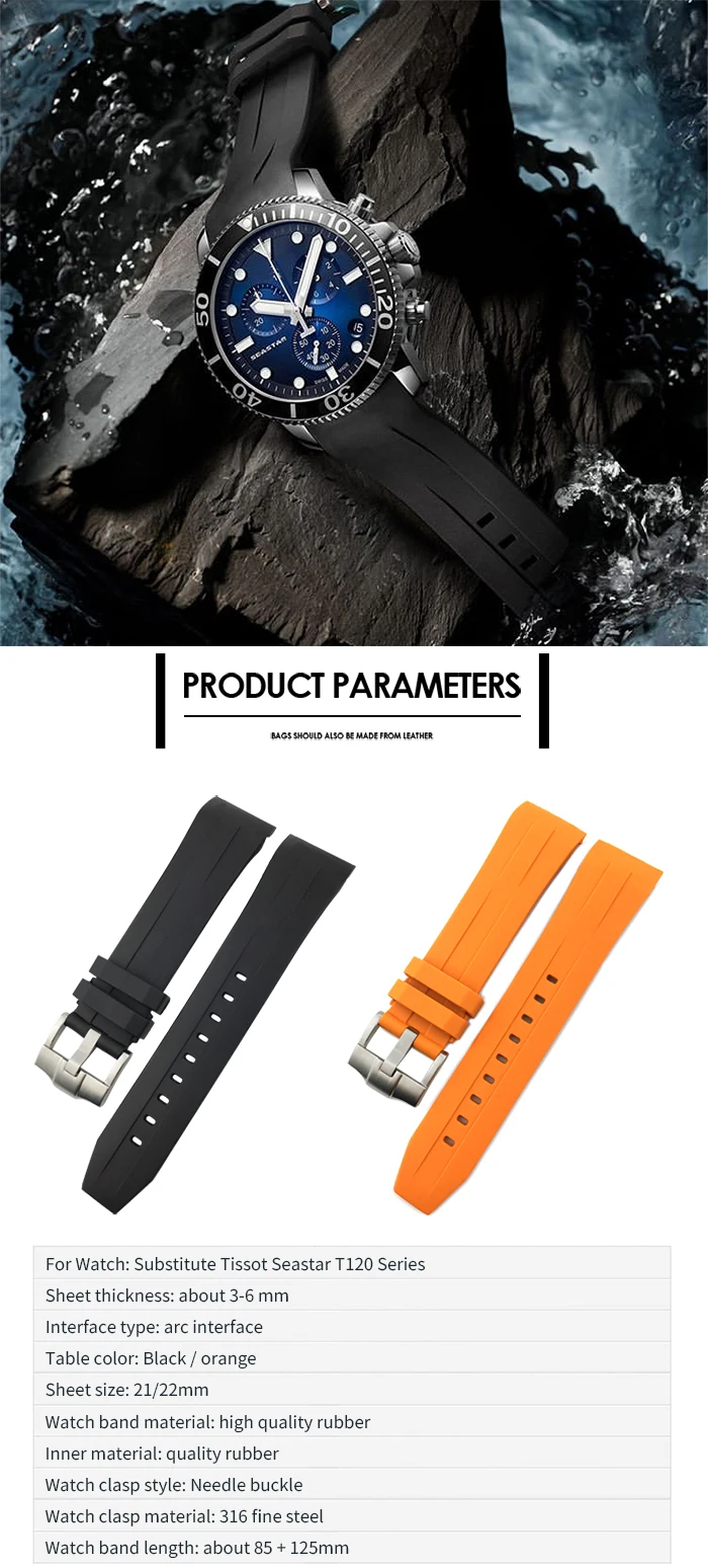 Ремешок силиконовый водонепроницаемый резиновый для часов Tissot T120 T055, браслет с иглой, черный оранжевый, 22 мм