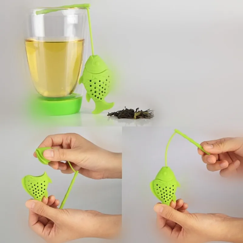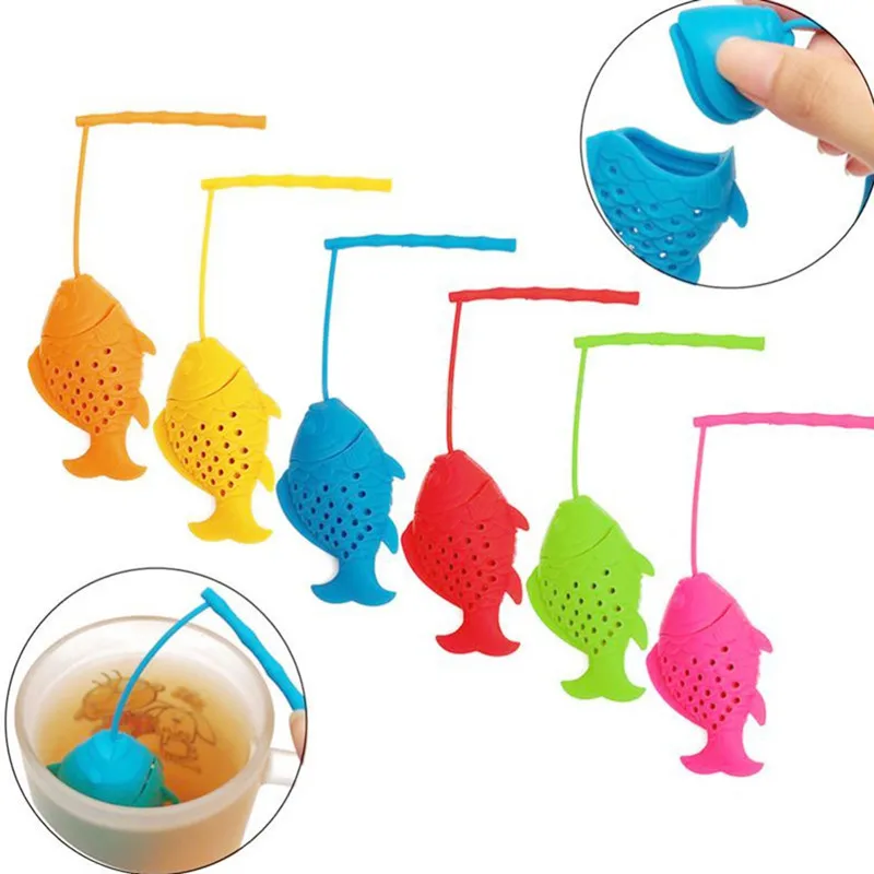 Милый рыбы Чай заварки диффузор Еда Класс силиконовые Травяные специи Чай фильтр вкладыш фильтр рыбы Форма Чай мяч аксессуары
