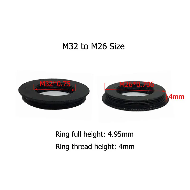 Резьба M25 * 0,75 мм предназначена для Nikon и Leica Размер объективной резьбы объектива.Резьба M26 * 0,706 мм предназначена для объектива микроскопа Mitutoyo размер резьбы.M32 * 0,75 для некоторых микроскоп Nikon объективный размер резьбы объектива.Если вам нужно подключить различные объективные линзы с различным брендом микроскопа, из-за различных размеров резьбы, вам понадобится переходное кольцо. Это функция нашего кольца adpater.Если вы не уверены в размере кольца адаптера, пожалуйста, сообщите мне размер резьбы объектива и бренд микроскопа, тогда я дам вам несколько советов. Большое спасибо.