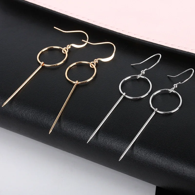 Новинка, золотистые серьги-подвески для женщин, Длинные круглые серьги, модные украшения, эффектные геометрические серьги для женщин