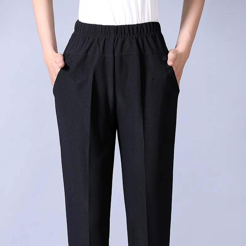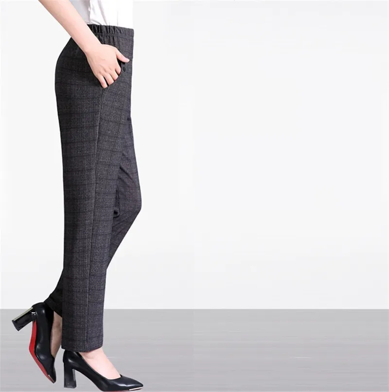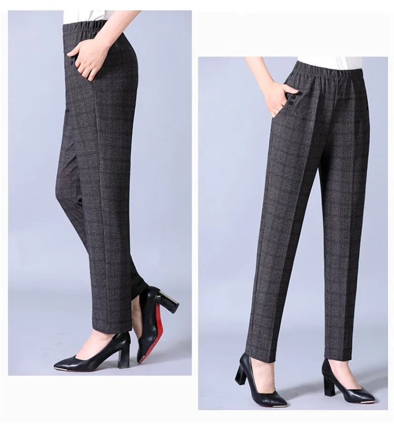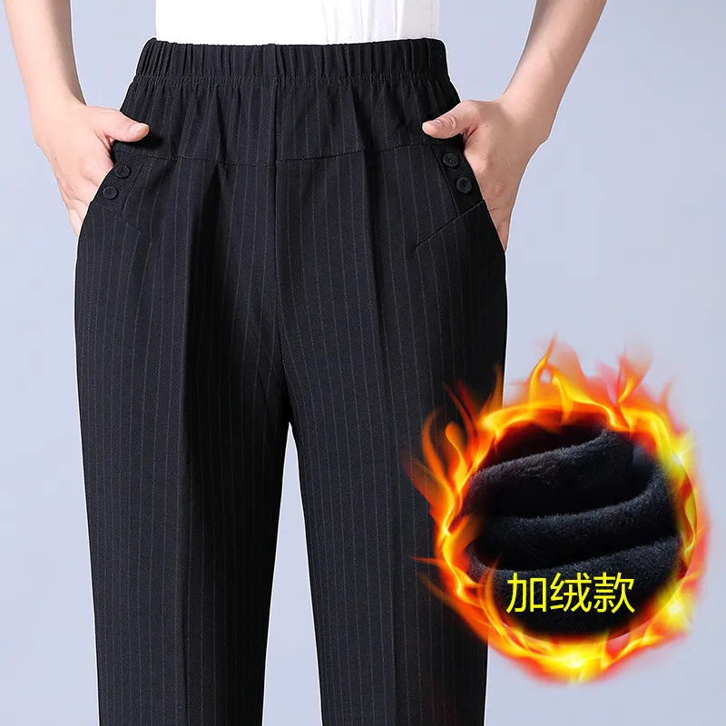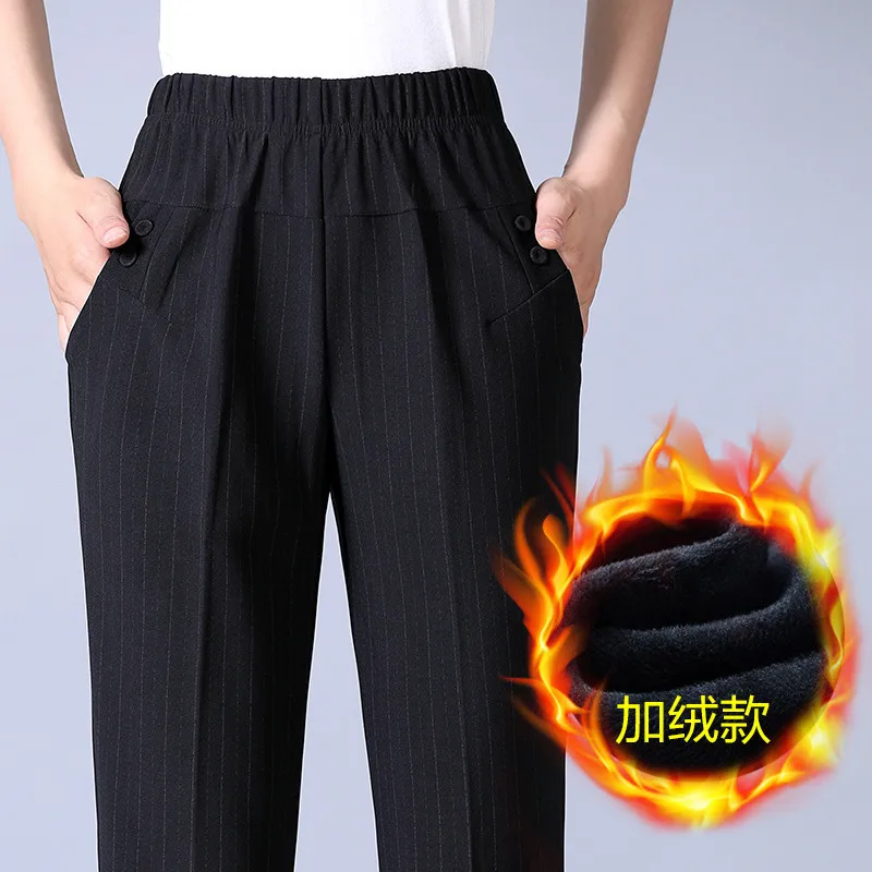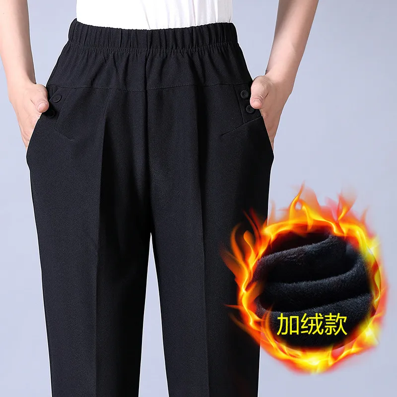 Новинка, осенне-зимние брюки для женщин среднего возраста, теплые бархатные прямые повседневные брюки с эластичным поясом, женские брюки, размеры 3XL, 5XL, M475