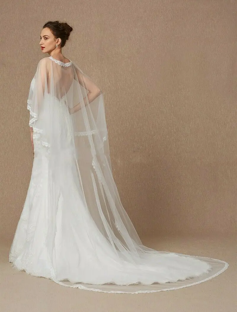 Свадебные свадебные куртки с запахом, свадебная накидка с кружевными краями цвета белой слоновой кости, Длинная накидка для торжественных случаев