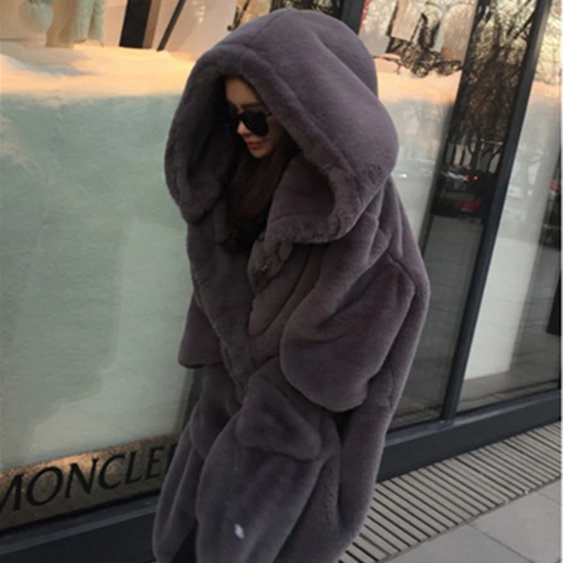 Шуба из искусственного меха, новинка 2019, женская зимняя Толстая длинная куртка с капюшоном, мягкие женские пальто, повседневные куртки