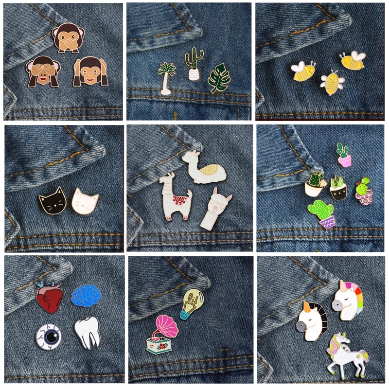 Брошь в виде кошки, эмалированная заколка, зуб гордости, овцы, растения, лацкан, рюкзак, джинсовая куртка, ювелирные изделия для детей, подарок, 2 5 шт.набор