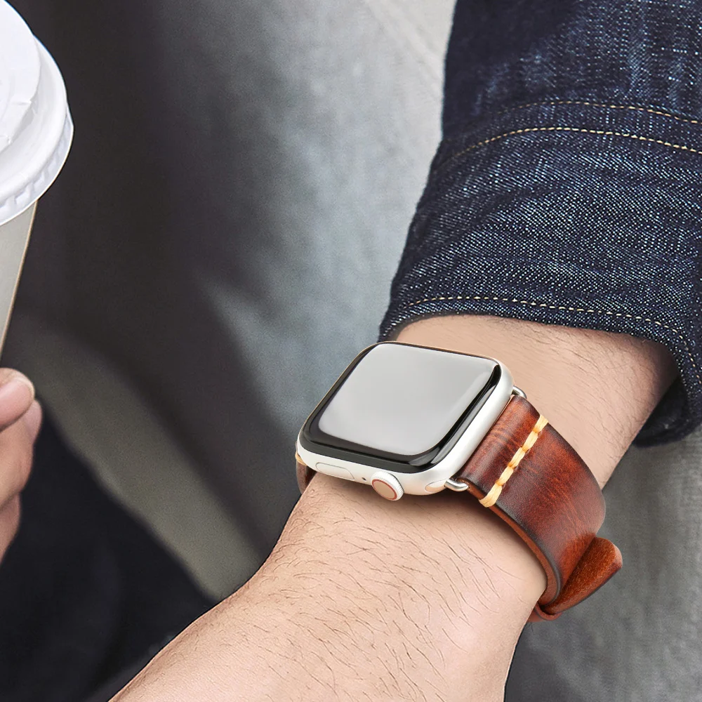 Ремешок ручной работы из коровьей кожи для Apple Watch Band 45 мм 4...