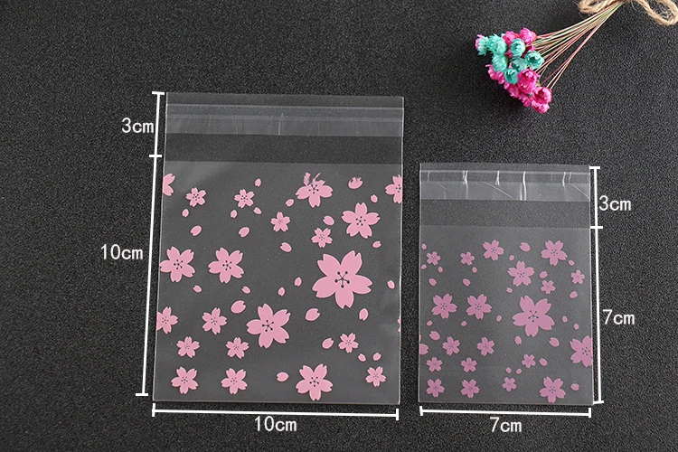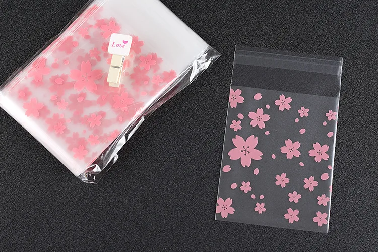 100 шт. пластиковые прозрачные матовые вишневые конфеты упаковочный пакет для печенья самоклеющиеся пакеты для выпечки, свадьбы, дня рождения