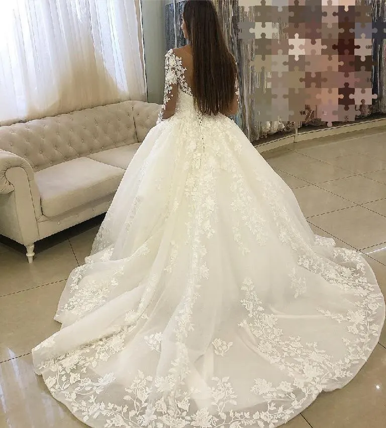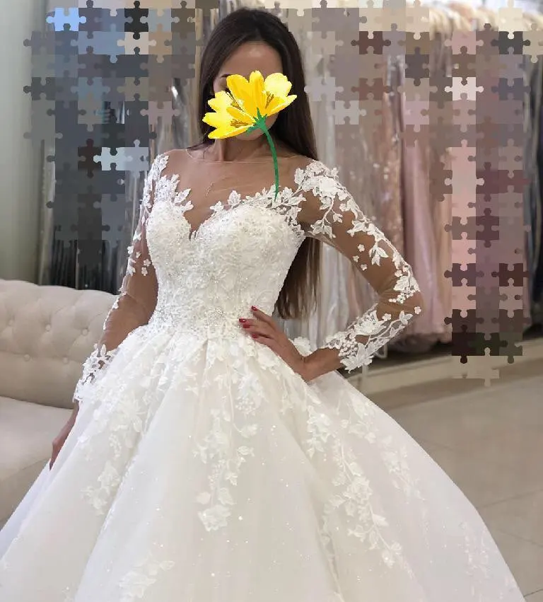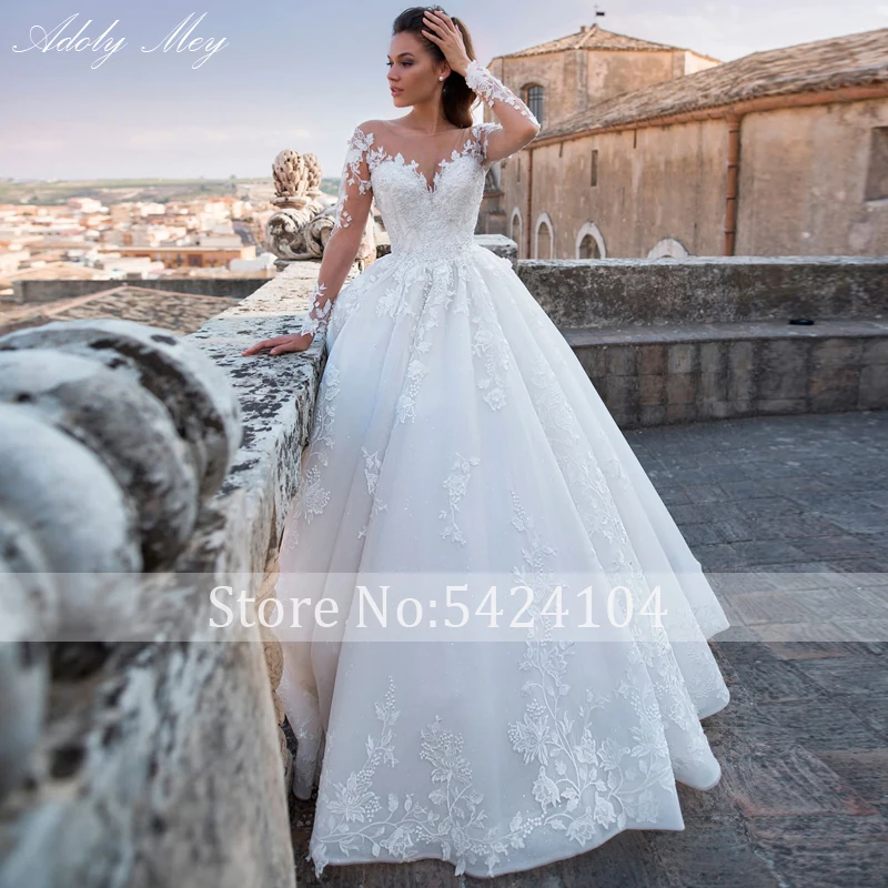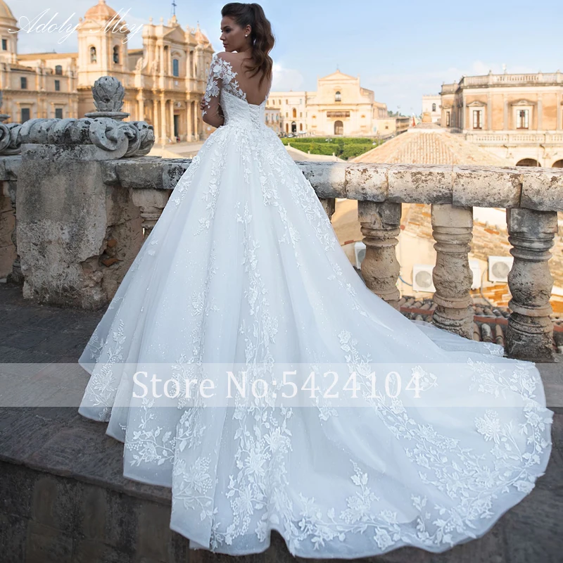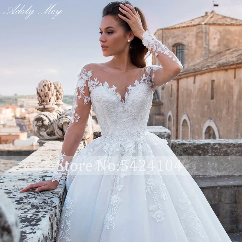 Роскошное свадебное платье-трапеция Adoly Mey с аппликацией и длинным рукавом, украшенное бисером, романтичное винтажное платье невесты с круглым вырезом и шнуровкой, 2022