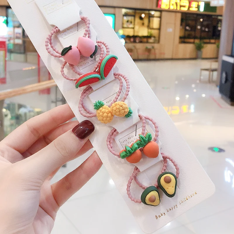 3/10 шт./комплект, милое кольцо для волос для девочек, веревка на голову с фруктами, эластичная резинка для волос, повязка на голову с героями мультфильмов, Детские аксессуары для волос