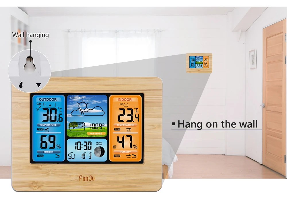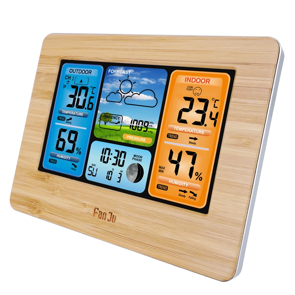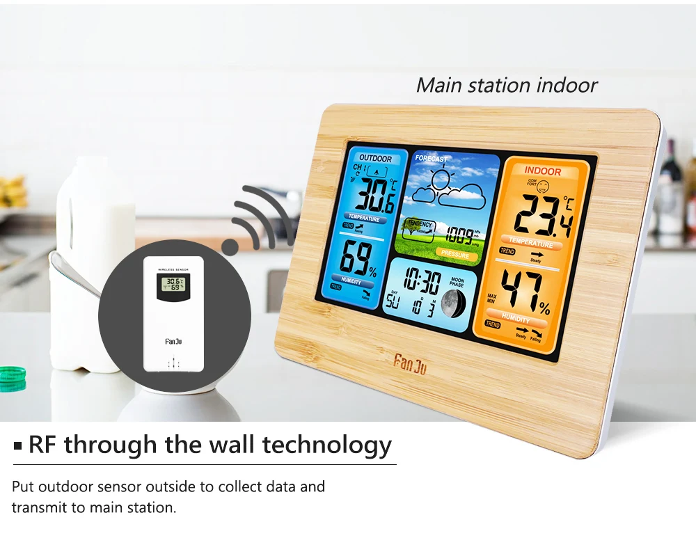 Настенные часы FanJu FJ3373, комнатная и уличная метеостанция с бар...