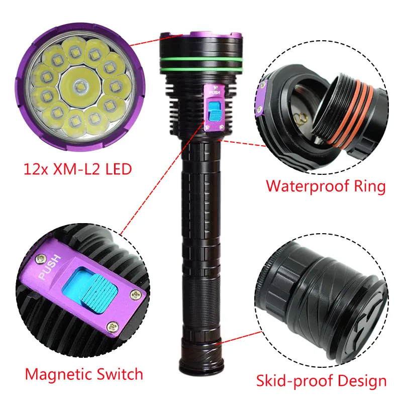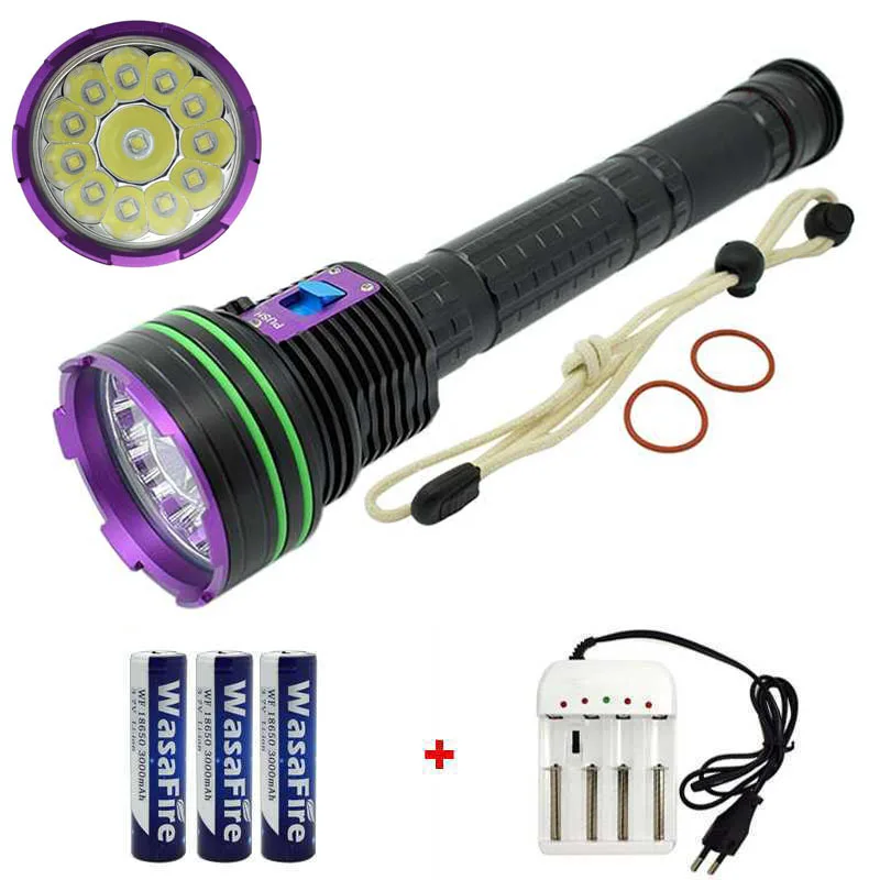 Фонарик для подводного плавания, 30000LM, 12x, XML L2, светодиодный фонарик для дайвинга, водонепроницаемый фонарь для Акваланга, лампа для дайвинга с батареей 3*18650 + зарядное устройство