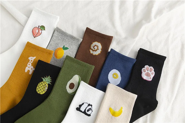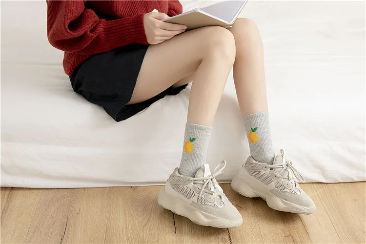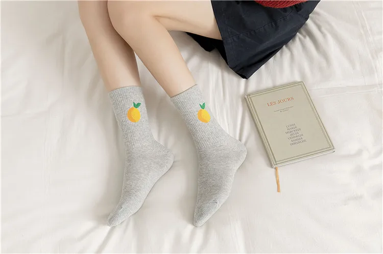Унисекс, забавные носки с фруктами, корейский стиль, для мужчин и женщин, Harajuku, цветные, милые носки средней длины, 100% хлопок, Kawaii, носки Meias