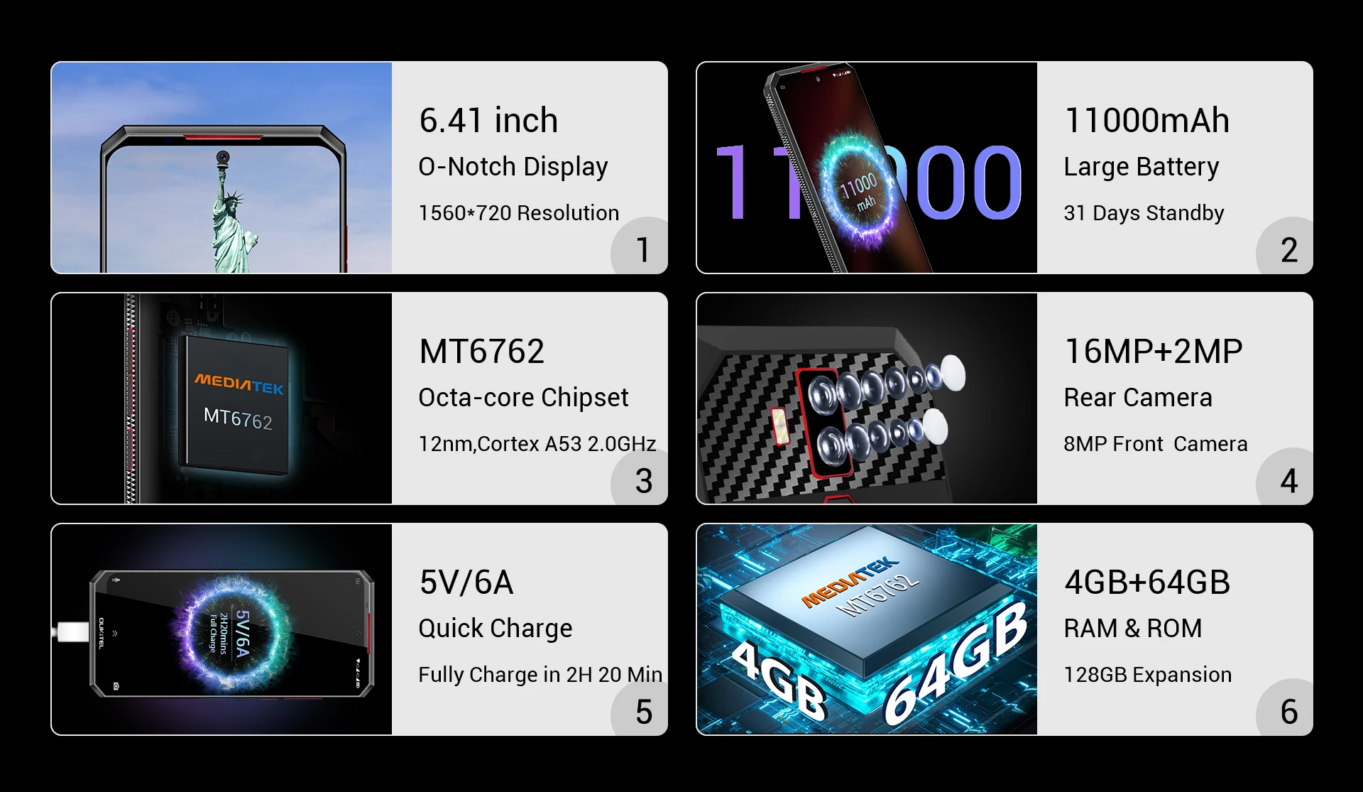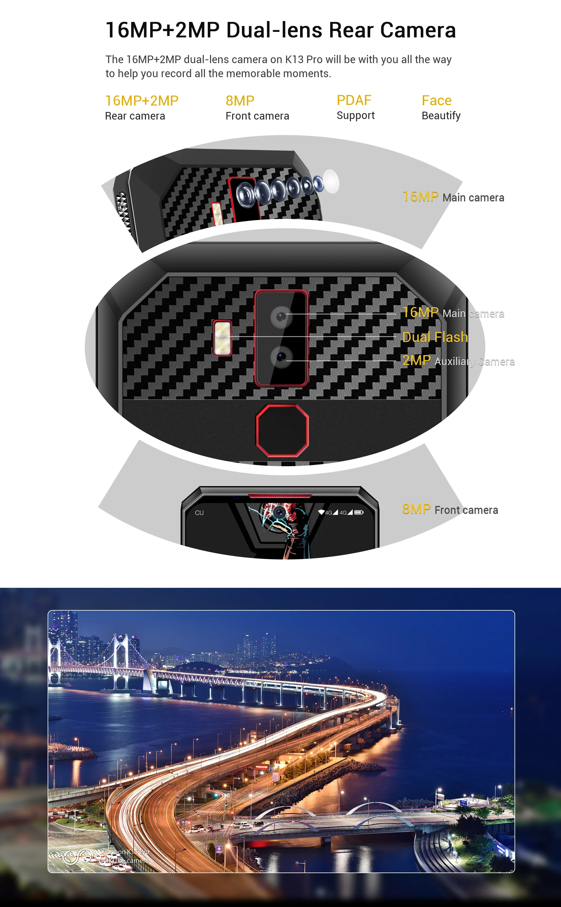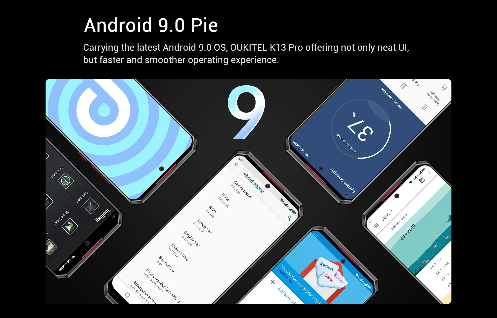 Мощность в MediaTek MT6762 восьмиядерному процессору и 4 оперативной памяти, OUKITEL K13 Pro предлагает супер свободный опыт в играх и мульти-задачи.