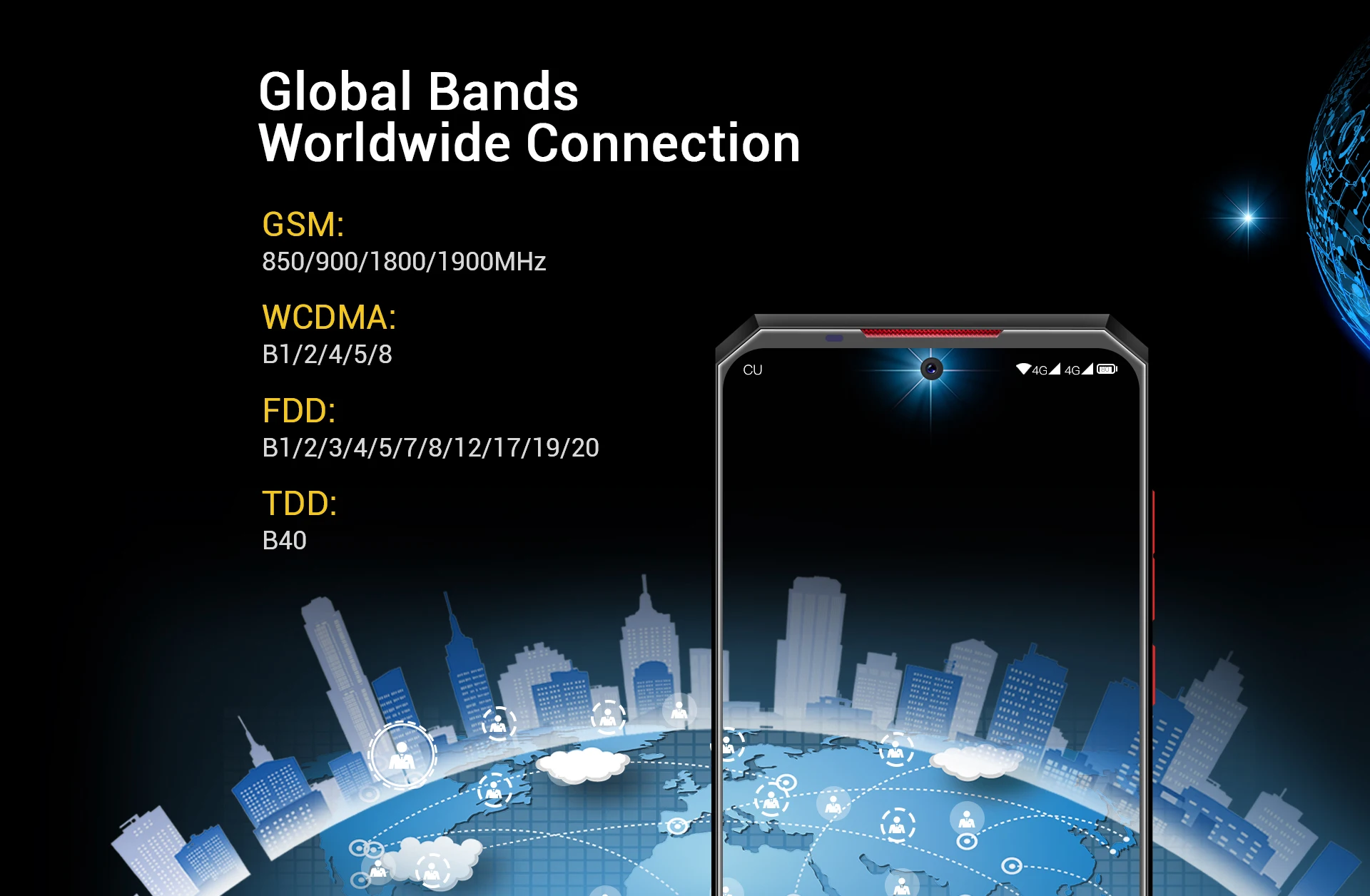 3G: WCDMA B1/B2/B4/B5/B8